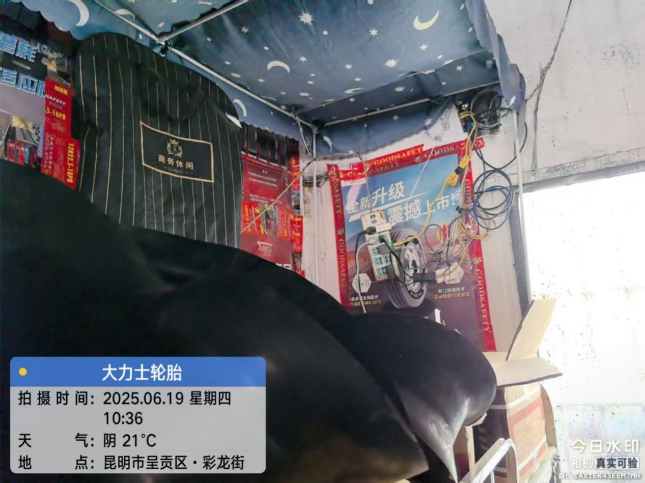 发现问题: 1.存在“三合一”店内住人现象(住有2人,1张床铺); 2.部分电气线路杂乱未穿管。