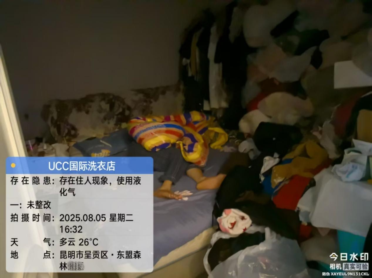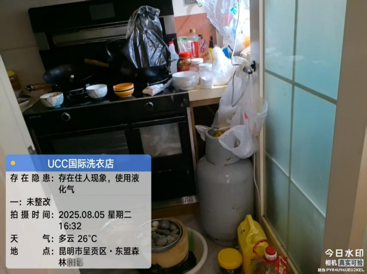 发现问题:1.商铺内存在住人情况,(住有3人,含有1名儿童,1名孕妇)。