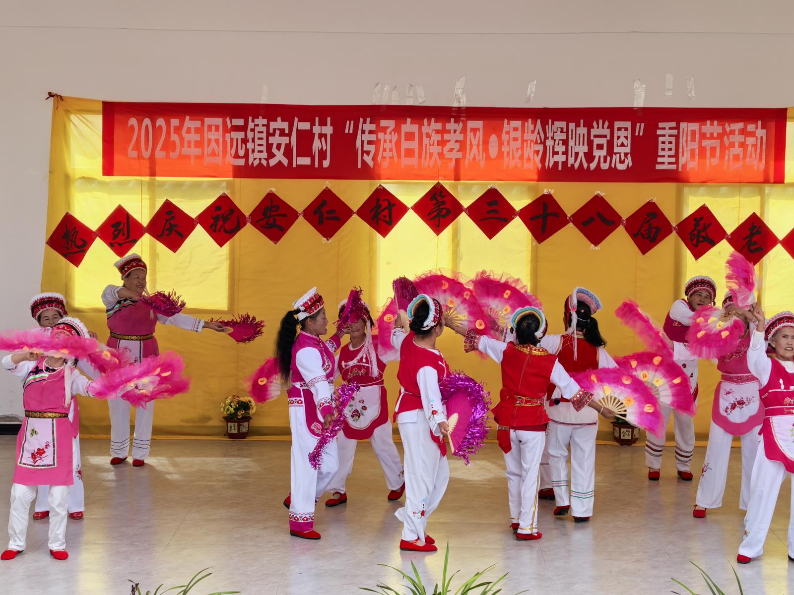 唱红歌、听古韵、赏非遗、话幸福。大合唱《没有共产党就没有新中国》、花灯剧《江姐》、歌曲《最美不过夕阳红》、白族洞经古乐、《八角鼓》等节目先后登台。在表演的队伍中,大部分都是六七十岁的老年人,他们中,有来自市区、县城的退休干部,也有村里的文艺爱好者,大家在表演中,充分展示着新时代老年人的精神风貌,也生动展现了多元民族文化共绘“中华民族一家亲”的画卷。