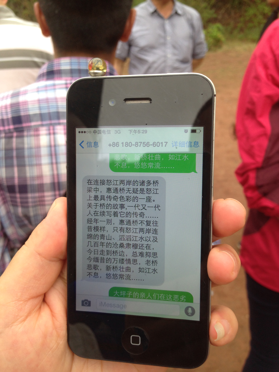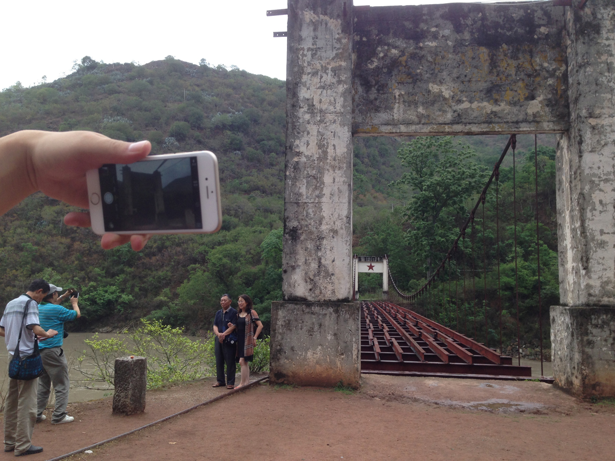 杨绍柏说,村子的村民当年虽然没有直接参加修筑滇缅公路,但是要负责运送民工和修路工具过江的。“我们每次经过都要来桥头看看,回忆一下当年的那段历史。”在一旁,杨绍柏的侄女李琳正在用手机不停地拍照。她告诉记者,每次经过她都会停车拍照,而且还在朋友圈里发送微信,宣传当年发生在这里的那段历史,宣传家乡。“我去年春节发了微信后,我的好多朋友都来这里参观呢,这就是对家乡的一种宣传推荐吧!”
