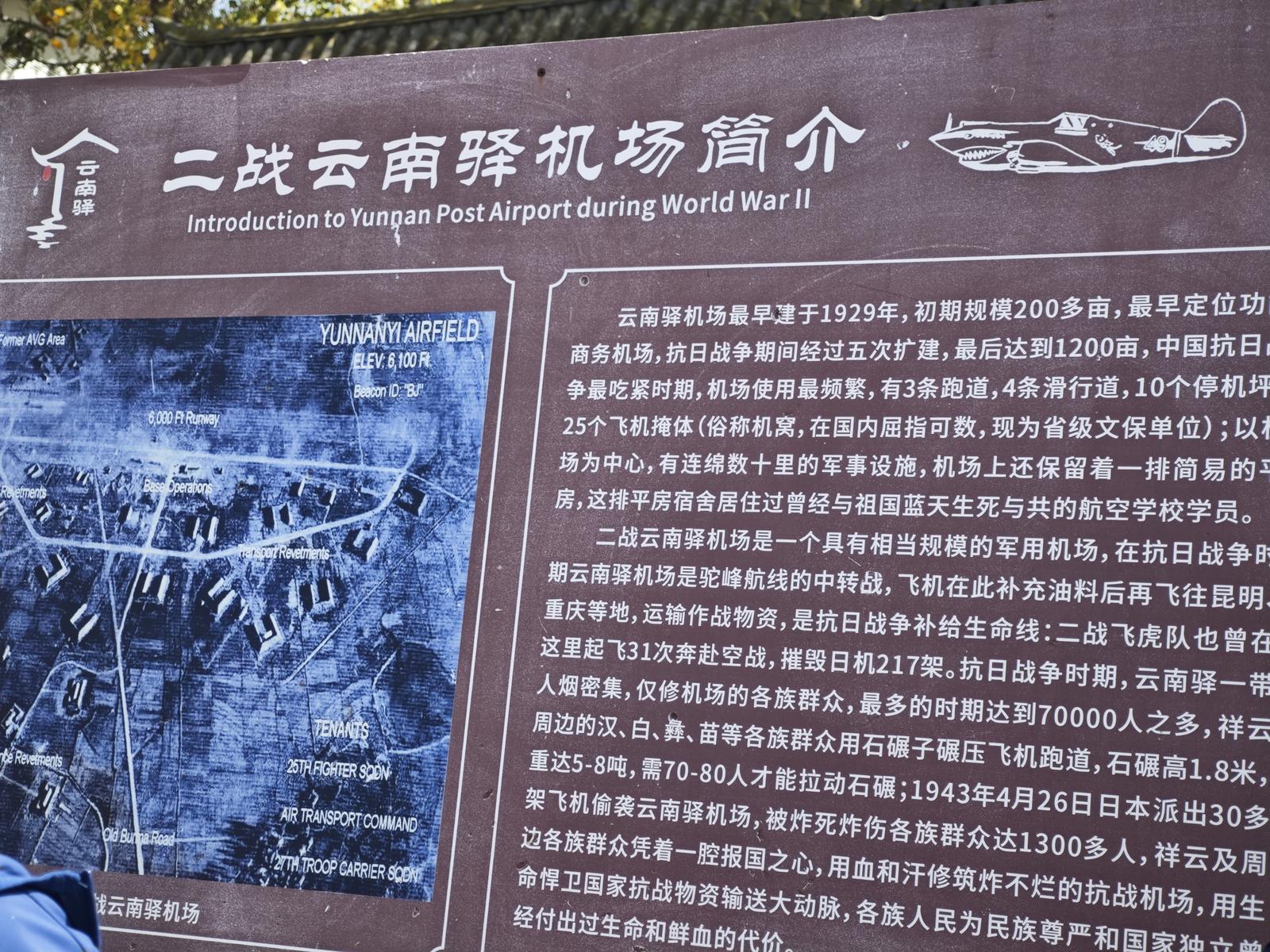 二战期间,云南驿机场等五处飞虎队空军基地,构成了美国驻华空军的重要力量。作为美国志愿援华航空队、美国驻中国航空特遣队及美国陆军第14航空队的作战基地,云南驿机场承担了西南地区的空运任务、驼峰航线物资转运、对缅日军作战以及滇缅公路的空中防务。