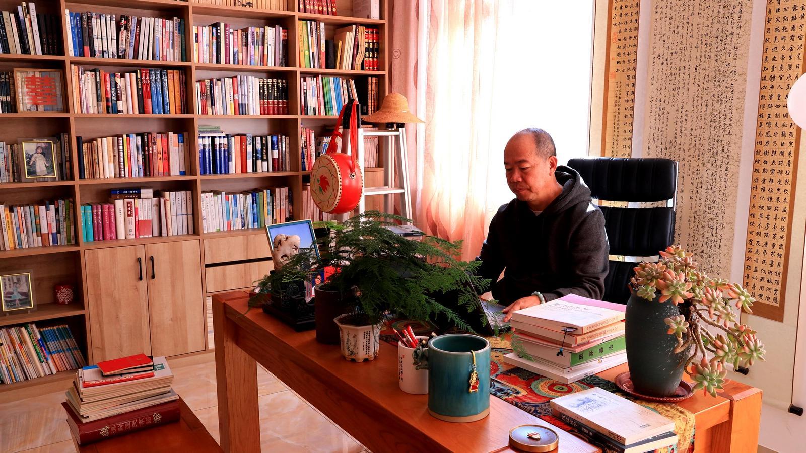 走进何建安的书房,两面墙的书柜格外引人注目,各类书籍琳琅满目,尤以地方志和民族民间文学类居多。