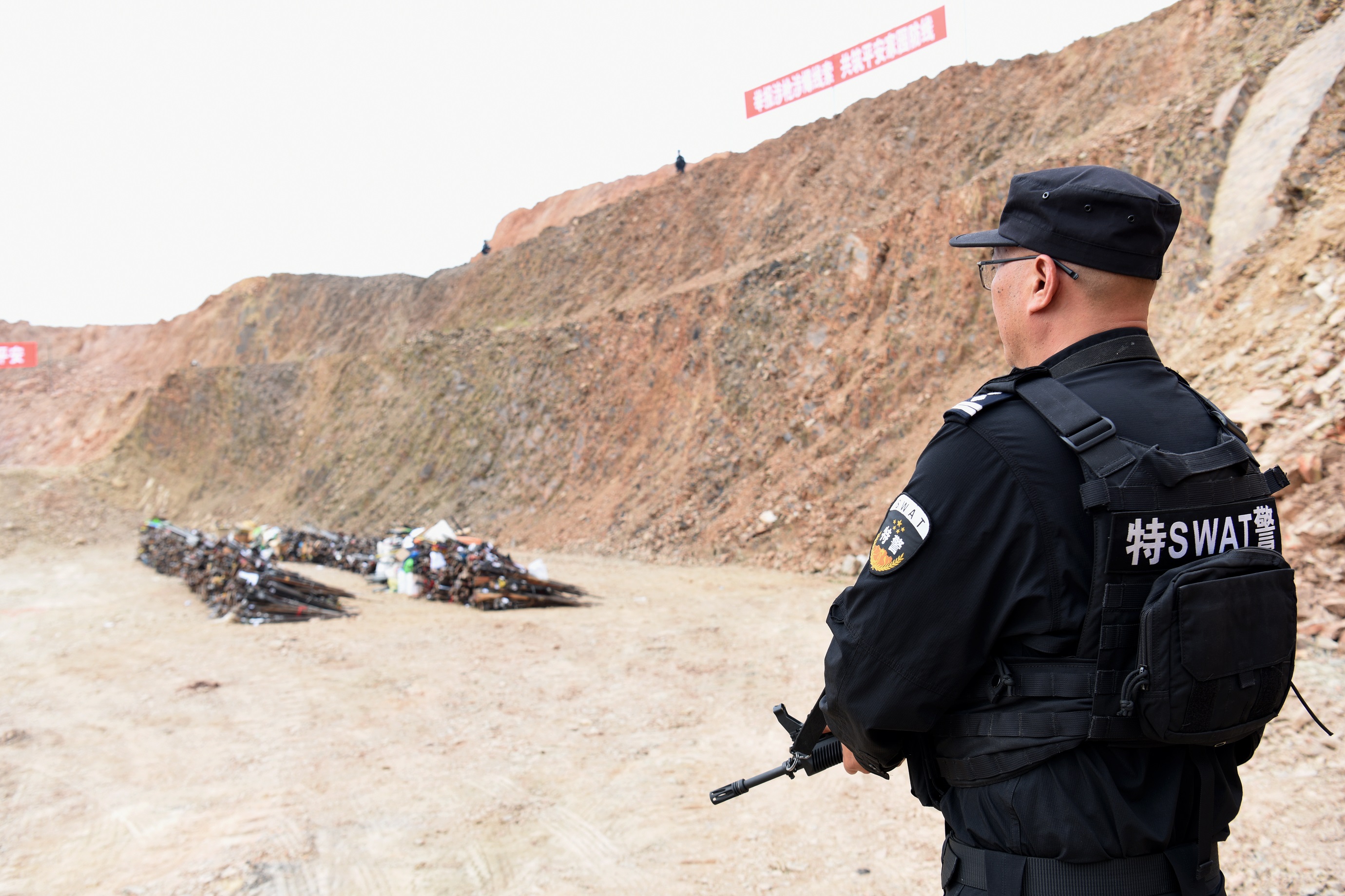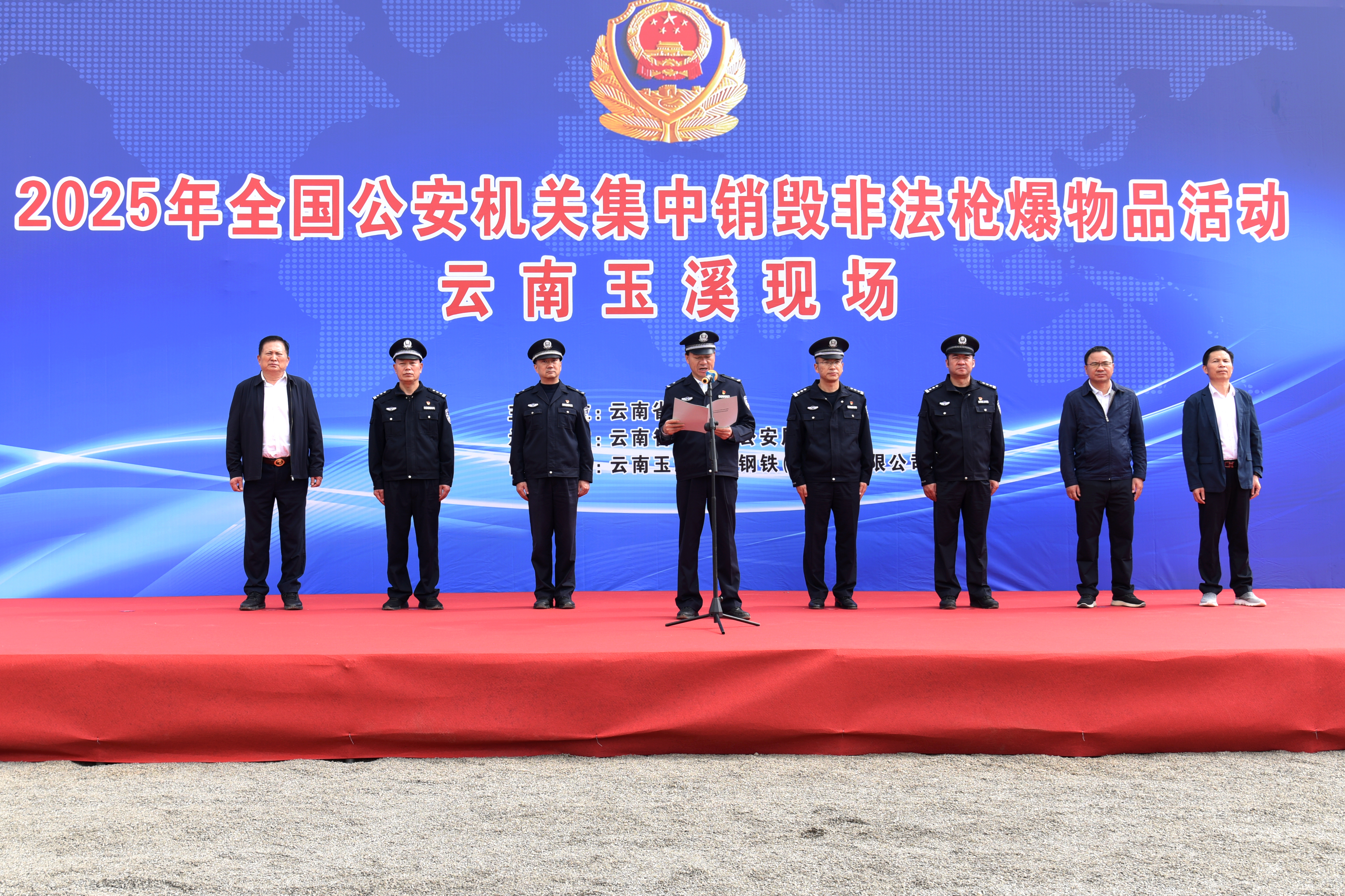 10月30日,为充分展现全省打击整治枪爆违法犯罪专项行动的战果和成效,全力消除枪爆隐患,通过对专项行动中收缴的非法枪爆物品进行集中展示和销毁,掀起新一轮宣传发动攻势。根据公安部统一部署,省公安厅在玉溪市组织开展以“消除枪爆隐患 警民共创平安”为主题的集中统一销毁非法枪爆物品活动。全省同步设置28个销毁现场,对近年来全省公安机关收缴和群众主动上缴的火药枪、射钉枪、猎枪等非法枪支9千余支、管制器具1.8万余把及一批炸药、雷管、历史遗留爆炸物进行集中安全销毁。