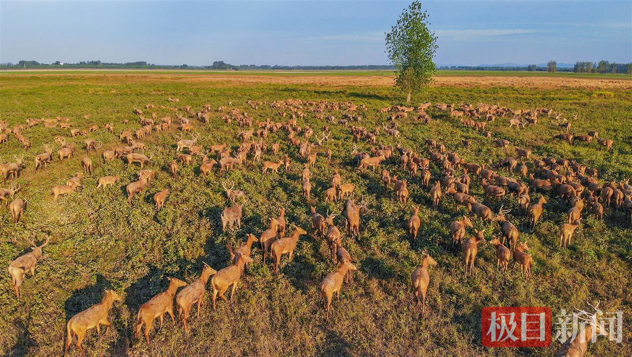 “今年我们监测到595头麋鹿幼崽。”湖北石首麋鹿国家级自然保护区科研副科长杨涛说,保护区内水草丰茂,生物多样性保护完好,已发现320种高等植物和355种脊椎动物,为麋鹿的繁衍生息提供了良好的栖息环境,“依托长江故道的天然优势,麋鹿种群年增长率在20%以上,幼鹿成活率在95%以上,处于高水平增长状态。”