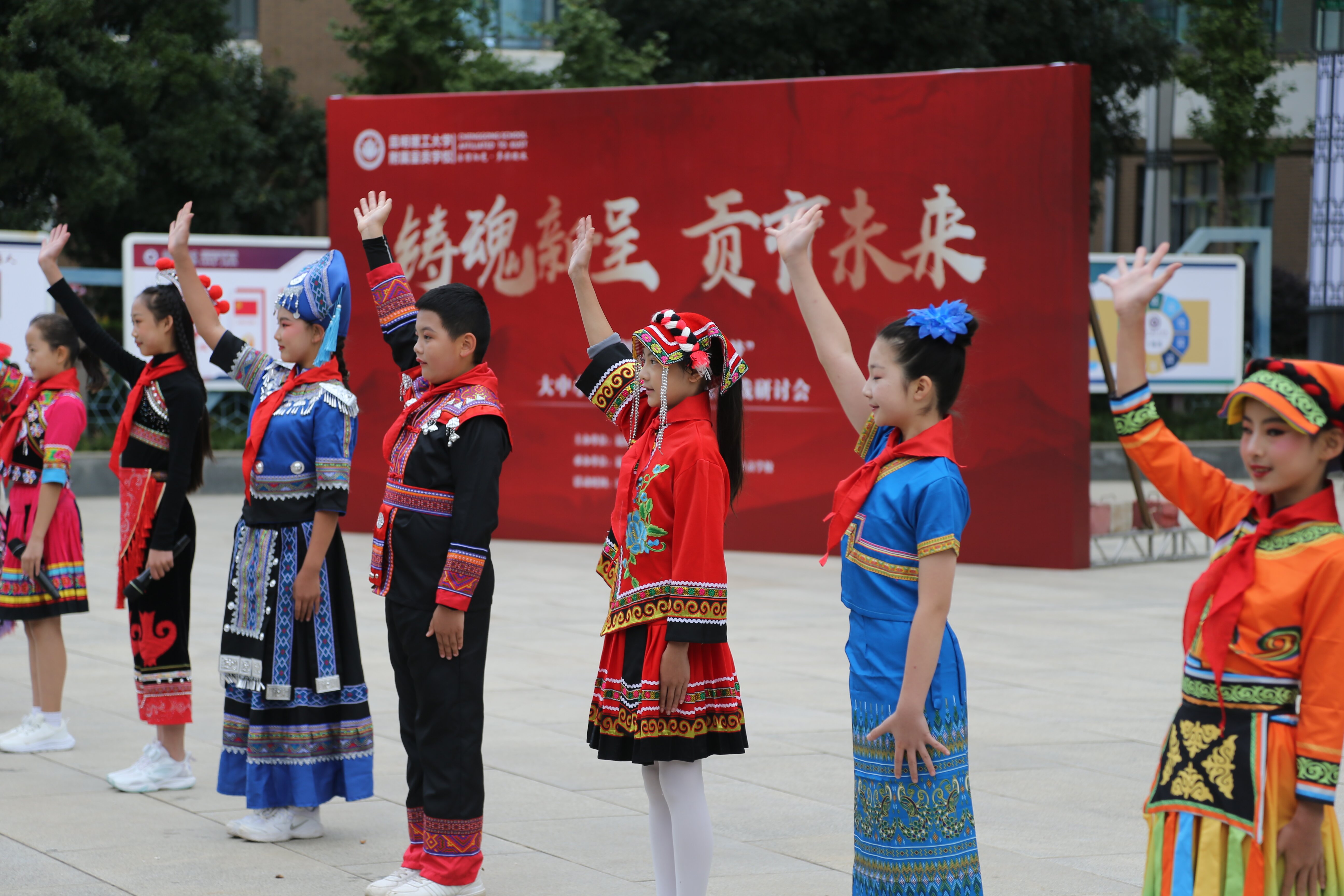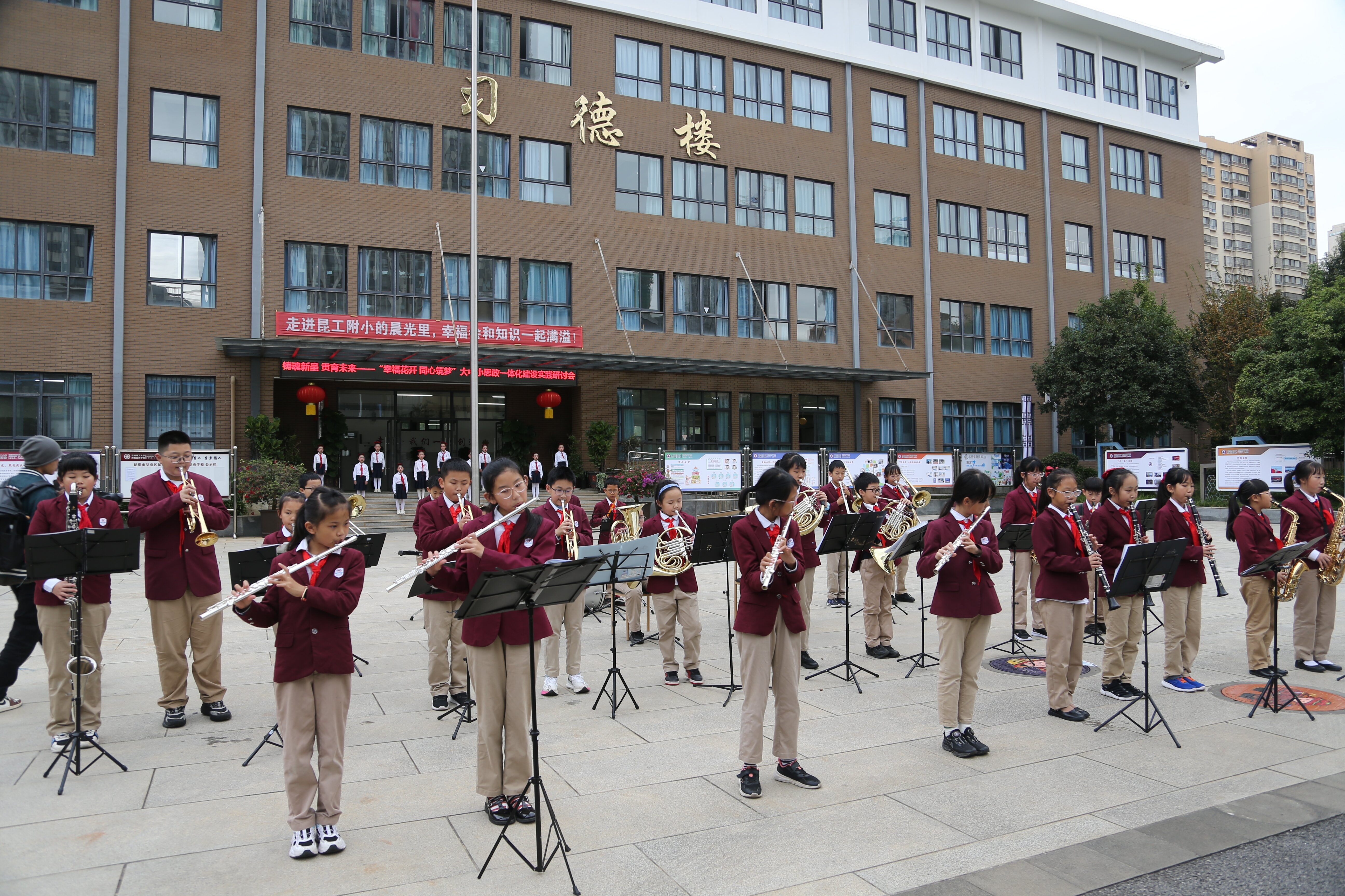 活动当天,幸福广场上管乐团奏响昂扬乐曲迎接每位来宾,营造庄重温馨的活动氛围。由学生组成的“石榴籽宣讲团”身着民族盛装,作为校园文化代言人热情导览,生动讲述思政教育与校园生活的有机融合。参会人员直观感受到昆明理工大学附属呈贡学校在大中小思政一体化建设方面的丰硕成果。
