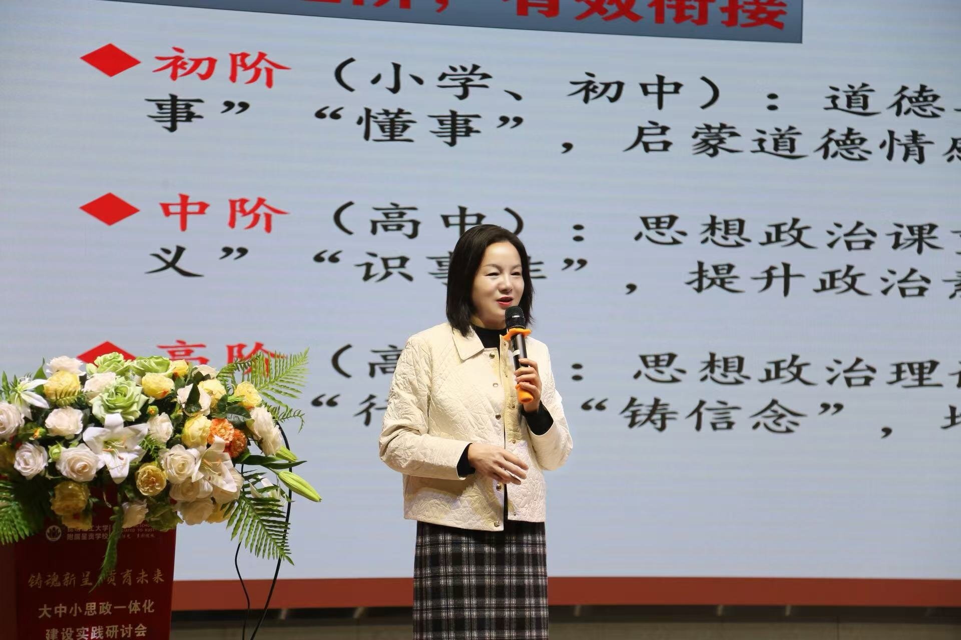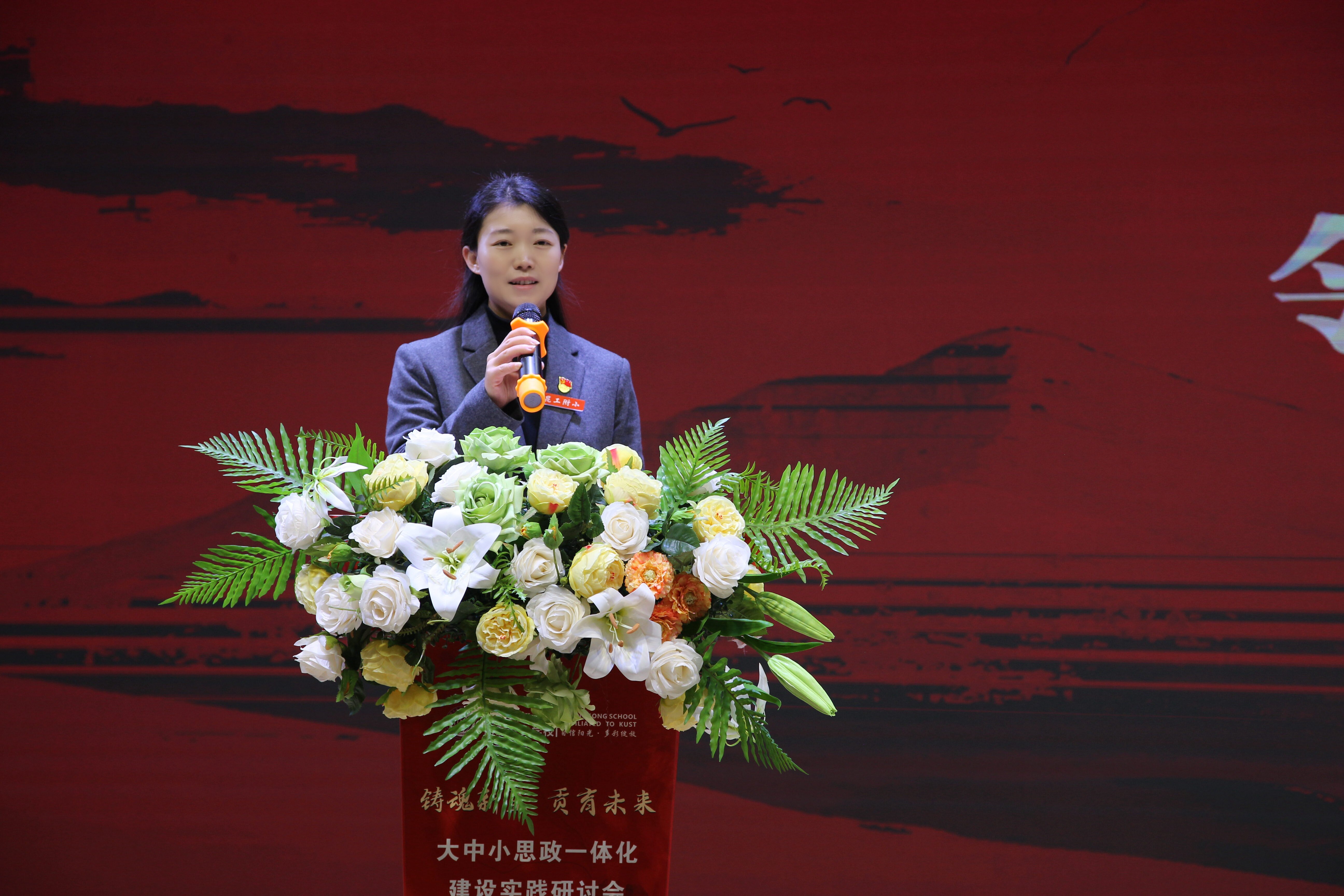 在思政专题讲座环节,昆明理工大学附属小学教育集团党支部书记、总校长石梦媛带来《大中小思政一体化建设的昆工附小教育集团实践》,深入分享了教育集团在大中小思政一体化建设中的探索与经验。