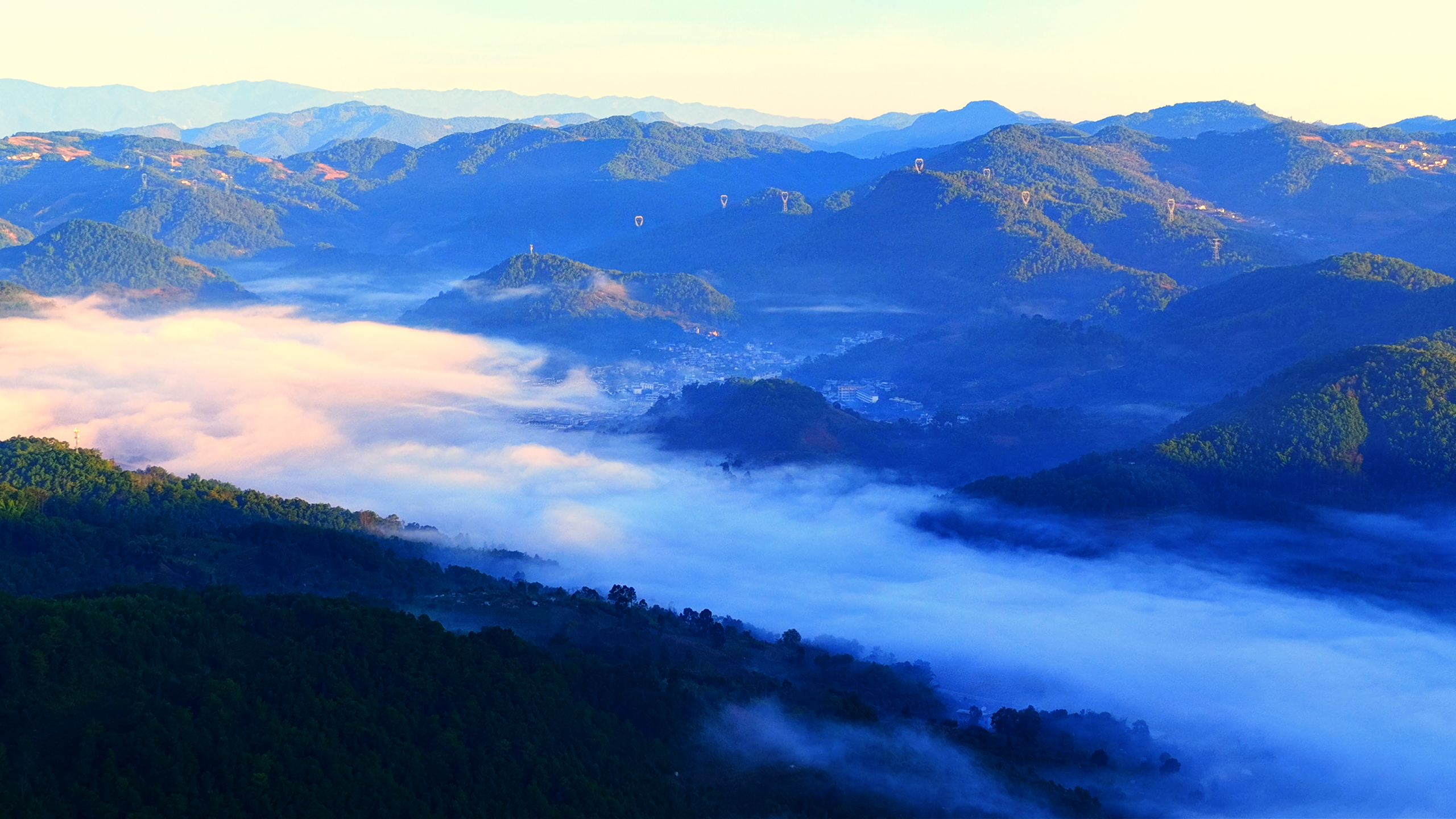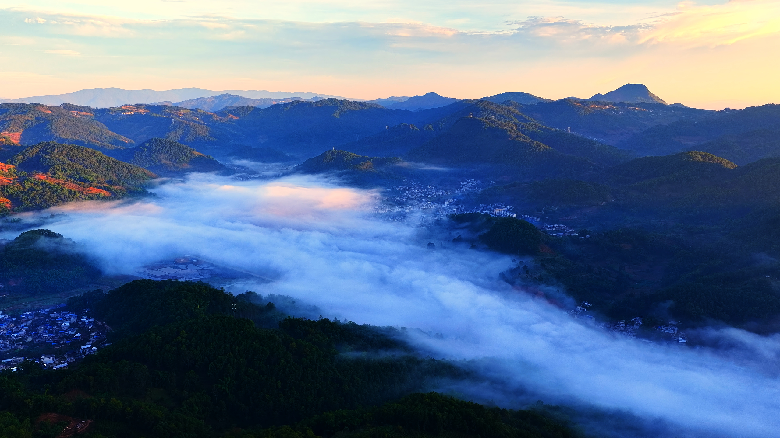 在这片绚烂云海之下,小勐统镇在晨曦中悄然苏醒。白茫茫的云层如同一床厚实的棉被,将小镇的烟火人间温柔覆盖,只露出零星建筑与田园轮廓,平添了几分神秘与安宁。云上云下,仙境与凡间在此刻仅一“云”之隔,形成了动与静、梦幻与现实的双重奏。