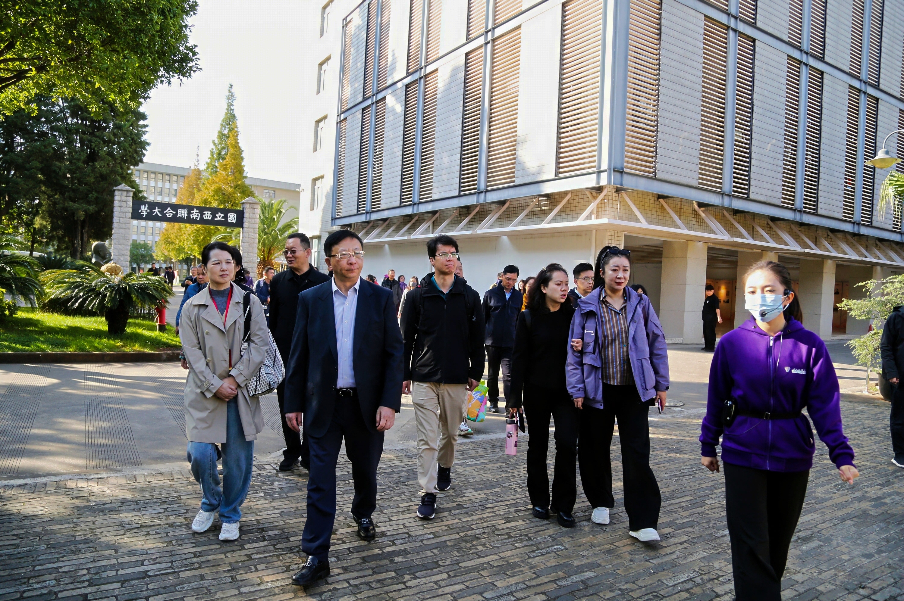 距离西南联大旧址校门不远,抬头可见纪念亭匾额上书“绝徼移栽桢干质”。“之前看到西南联大原址校门,我就被深深震撼了。”郑州报业集团党委委员、中原网总编辑张新彬向记者说,遍布旧址的纪念地标让他产生强烈共鸣,“这扇大门仿佛可以给每一个到访的游人注入强大的精神力量。”由于日程安排冲突,张新彬为了不留遗憾,选择在此行活动首日结束后马不停蹄赶往旧址,他重点参观了教室旧址与纪念碑,深切体会到西南联大在艰难岁月中的坚守。