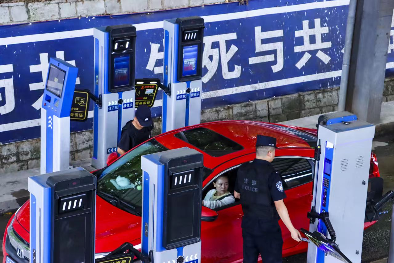 在小黑江边境检查站,记者实地体验公安机关“专业+机制+大数据”筑牢边境安全防线,“前端预检分流、中端综合研判、后端重点查验”的“三段式”勤务模式服务边境运输,用责任与担当、细心与耐心,在滚滚车流中筑牢安全防线。