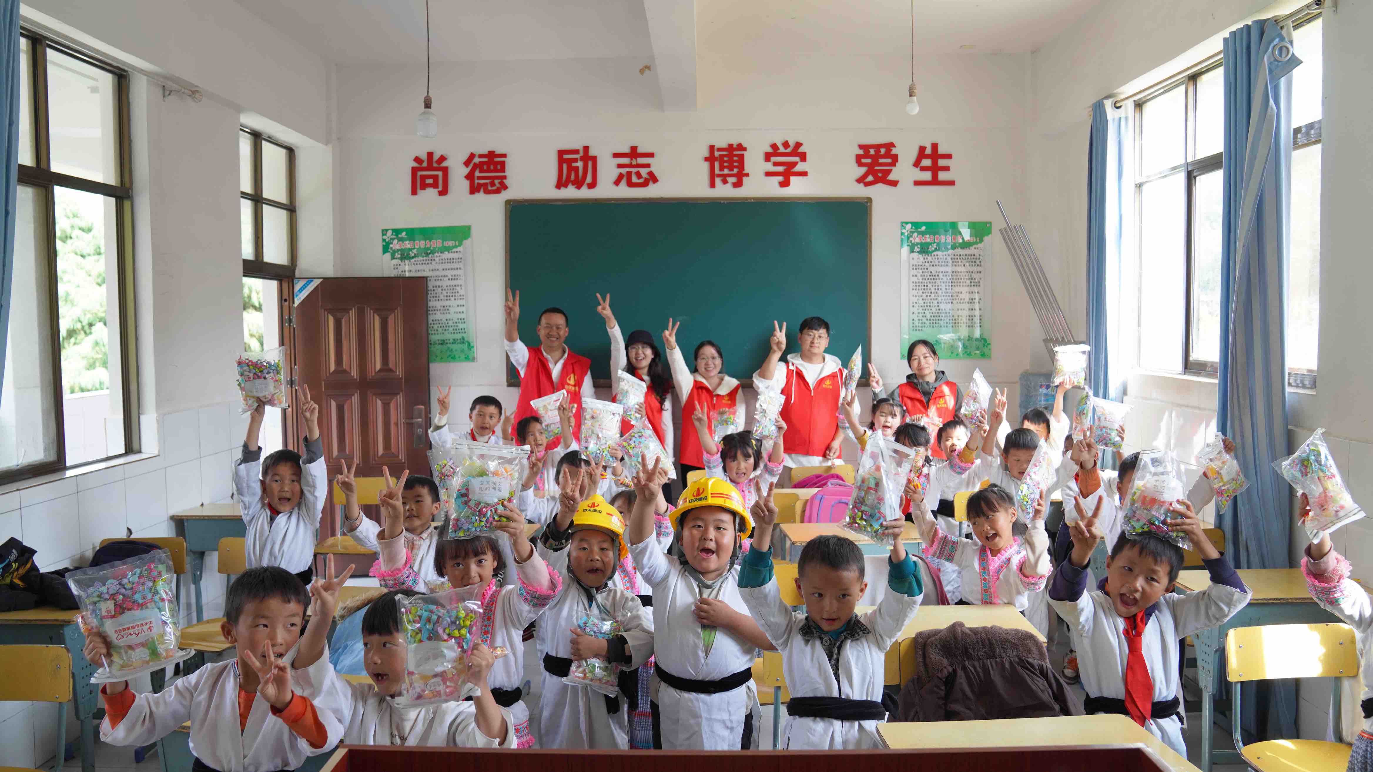 汤郎箐小学设有一年级和二年级两个班,共有28名孩子在校,学龄6至8岁,都是来自学校周边的苗族彝族农村家庭。中天八建党支部书记赵杨彬表示:“虽然学校学生数量不多,但这些留下来的孩子更需要我们的关注。希望通过我们的职业视角带着孩子们看一看,聊一聊。以建筑课堂为媒介,在孩子的意识里勾勒建筑工程师这份职业,鼓励他们去了解世界的缤纷多彩,为未来梦想启航点亮微光。”