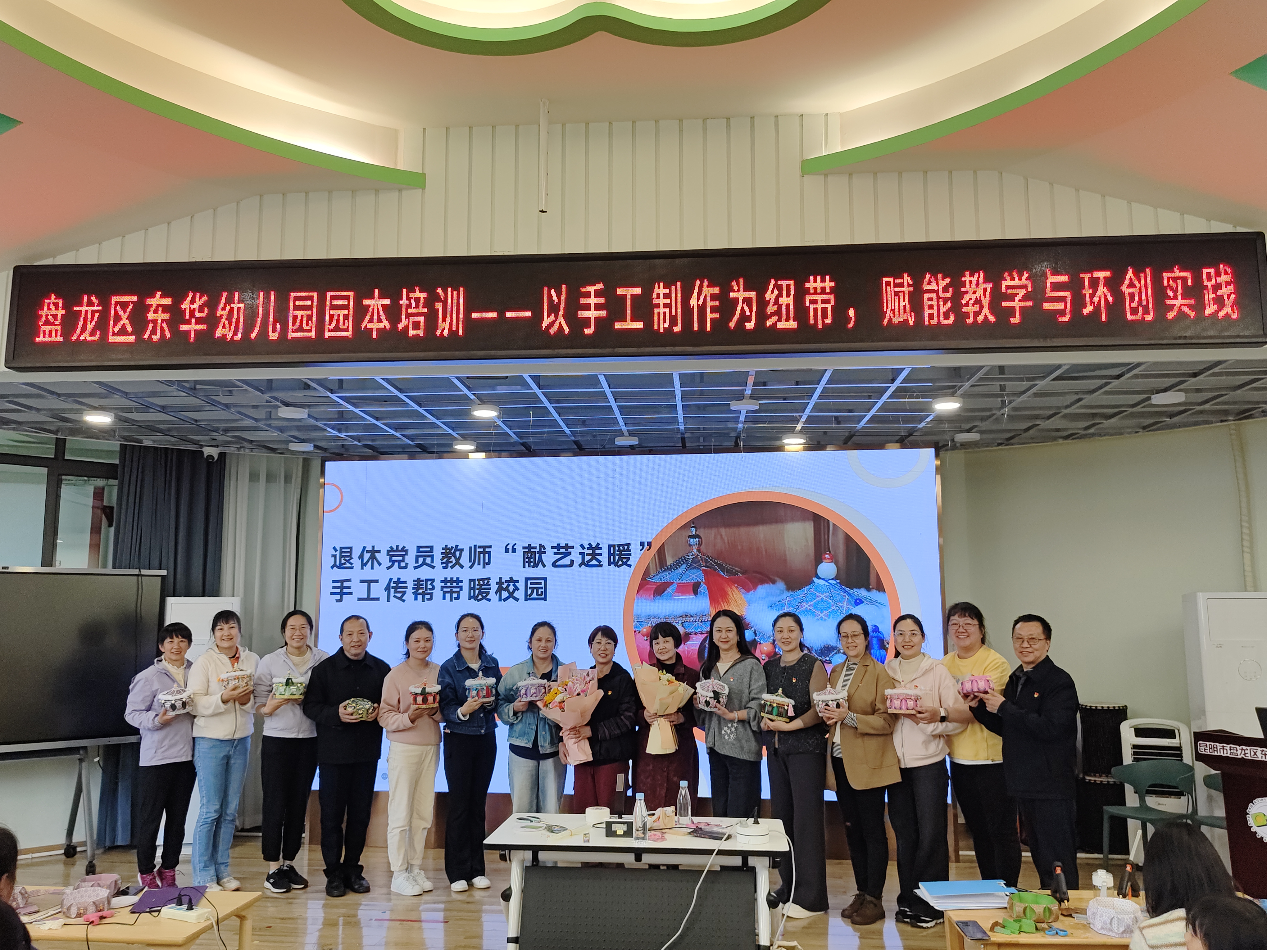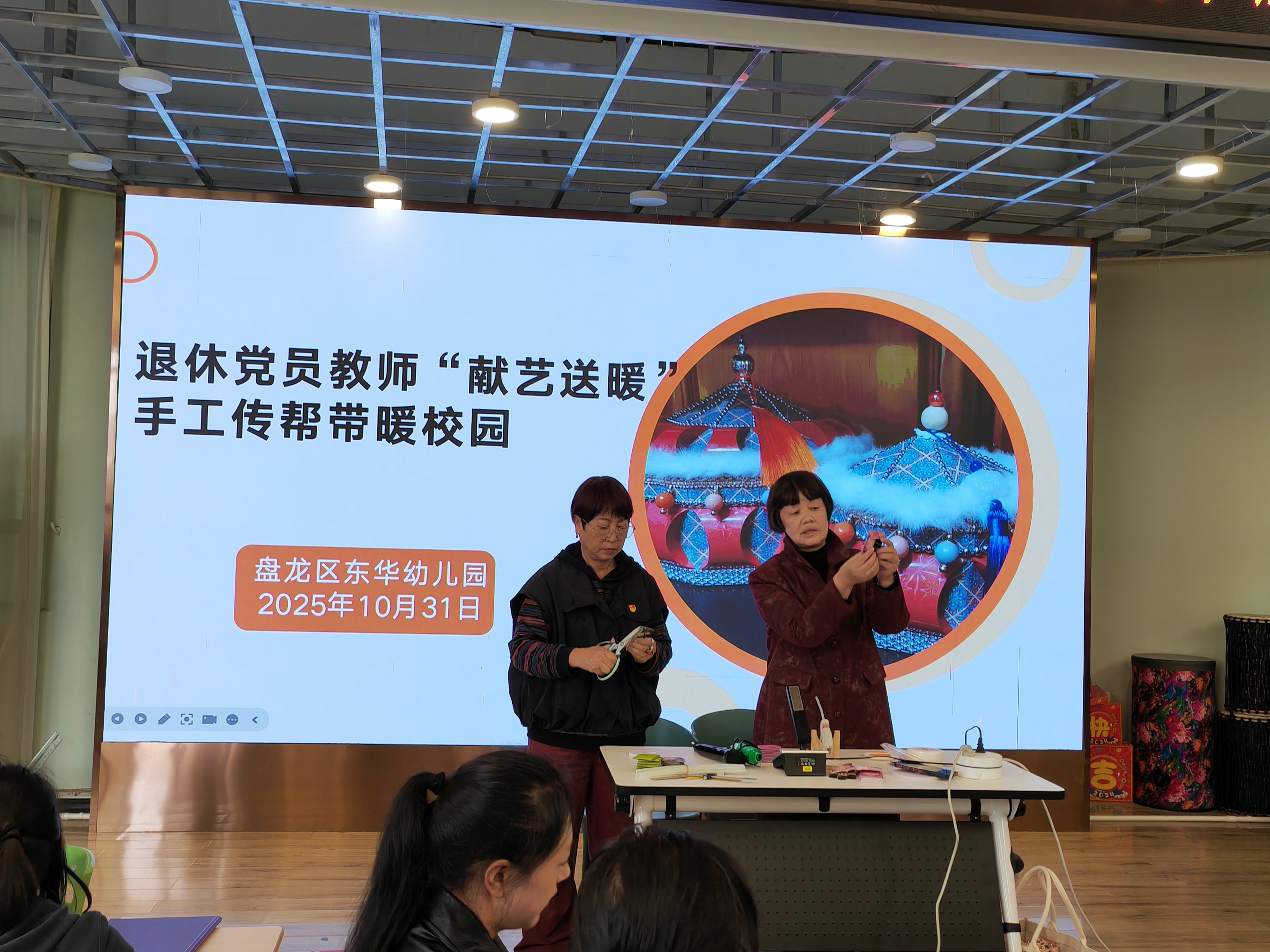 10月31日,盘龙区东华幼儿园迎来两位特殊“讲师”——已退休的党员教师林萍、刘莉娟,为园所教师带来一堂手工蒙古包收纳盒制作教学课,助力班级环境优化与教师综合素养提升。