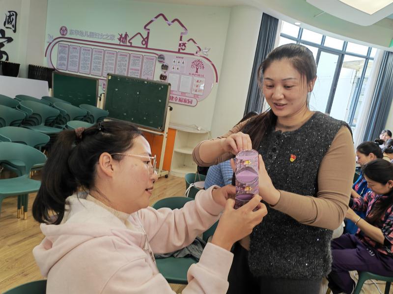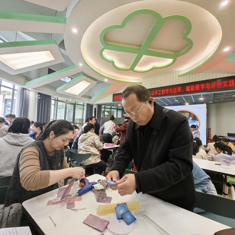 两位退休教师退休后始终保持对手工创作的热爱,擅长以废旧材料“变废为宝”,通过自主研究设计出多款实用手工艺品,既陶冶情操,更践行绿色理念。此次应园所邀请入园授课,她特意针对班级细小物品收纳需求,带来“手工蒙古包收纳盒”制作教学。培训中,她不仅耐心拆解制作步骤,从废旧卡纸裁剪、立体折叠塑形到创意装饰点缀,手把手指导教师攻克手工难点,更在过程中传递“变废为宝”的生态理念。教师们全程沉浸式参与,在动手操作中锤炼精细制作能力,在色彩搭配、造型设计环节提升审美情趣,更在老教师的讲解中深化绿色环保理念,现场互动频繁、学习氛围浓厚。