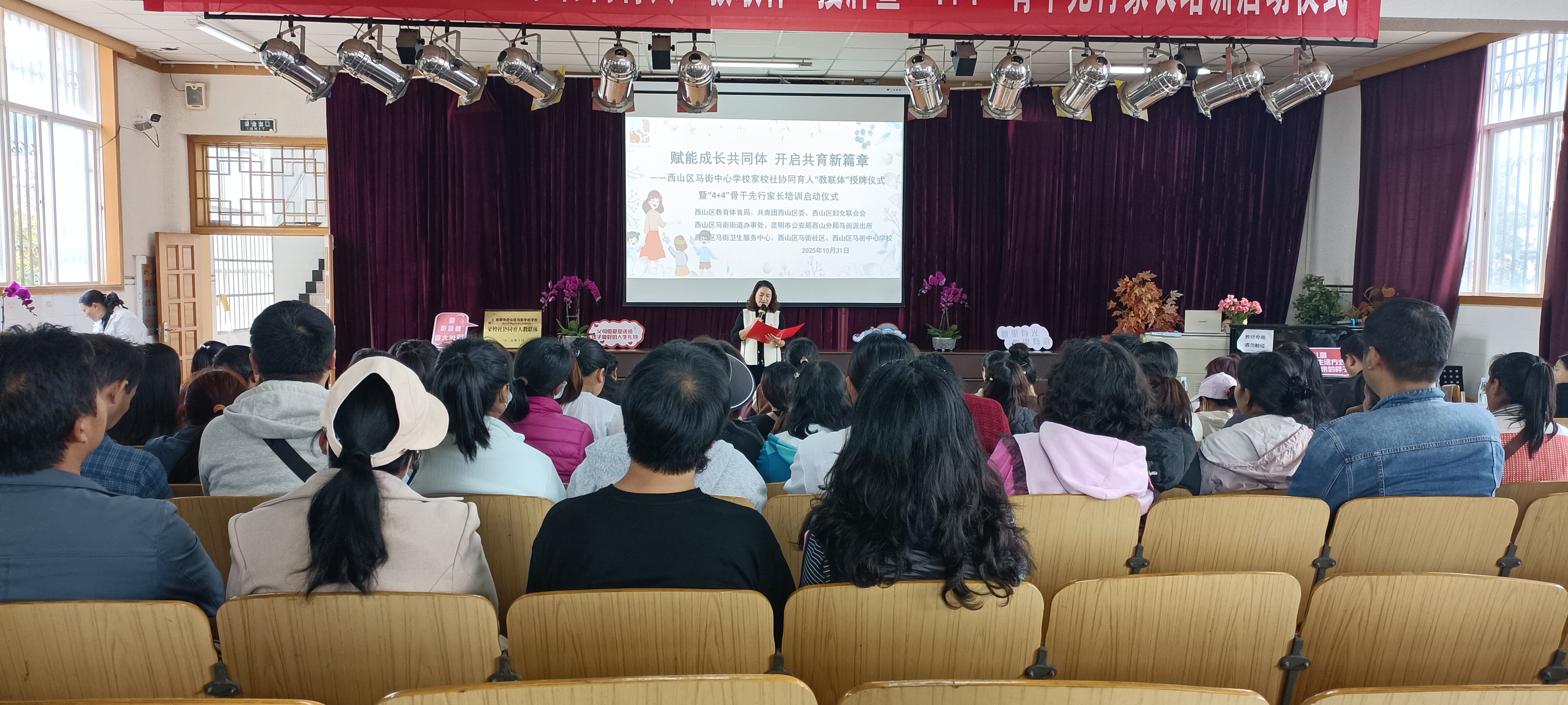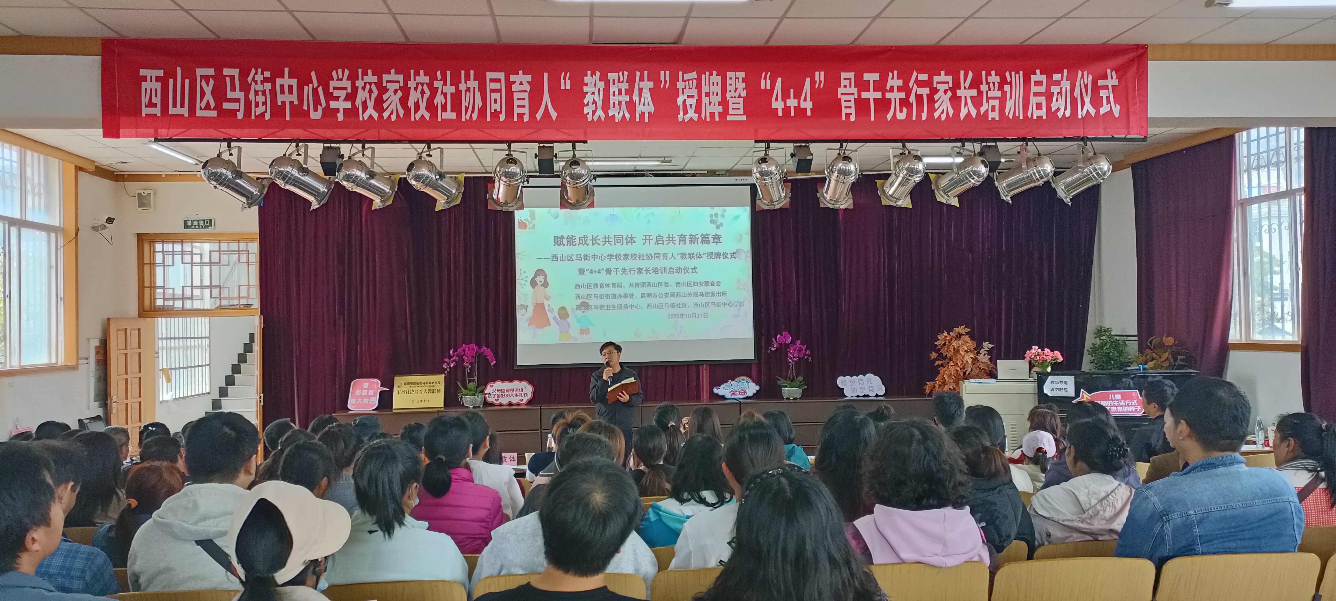 10月31日,西山区马街中心学校举行“赋能成长共同体,开启共育新篇章”家校社协同育人“教联体”授牌仪式暨家庭教育“4+4”骨干先行培训启动会。共青团西山区委、区妇联、区教体局、马街街道办、社区卫生服务中心、社区及相关合作单位领导,以及全校师生和家长代表齐聚一堂,共同见证这一重要时刻。