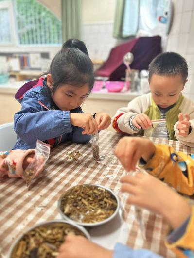 除了泡脚包,孩子们还化身为“小小养生师”。在老师的讲解下,他们认识了红枣、枸杞、麦冬这些适合秋冬季节的养生食材。