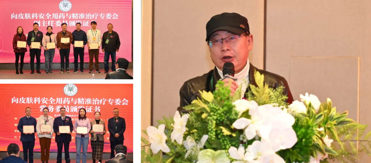 作为主任委员单位代表及专委会首任主委,董天祥教授在就任讲话中阐述了未来规划。他表示,专委会将聚焦四大核心任务:搭建高水平学术交流平台;组织编写皮肤科合理用药指南与规范;开展医师、药师复合型人才培训;建立公众科普与疑难病例会诊机制,切实让精准治疗与安全用药惠及更多患者。