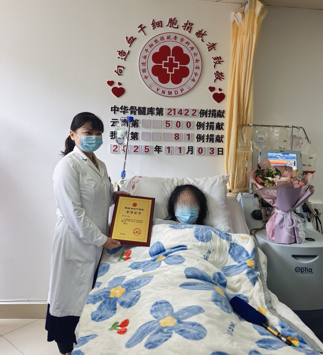 11月3日,一场跨越地域的生命接力在云南省第一人民医院(以下简称“省一院”)顺利完成。市民李女士成功捐献了造血干细胞,这份珍贵的“生命种子”将被送往河北,用于救治一名素未谋面的血液病患者。值得一提的是,李女士是云南省第500例造血干细胞捐献者,也是全国第21422例捐献者。