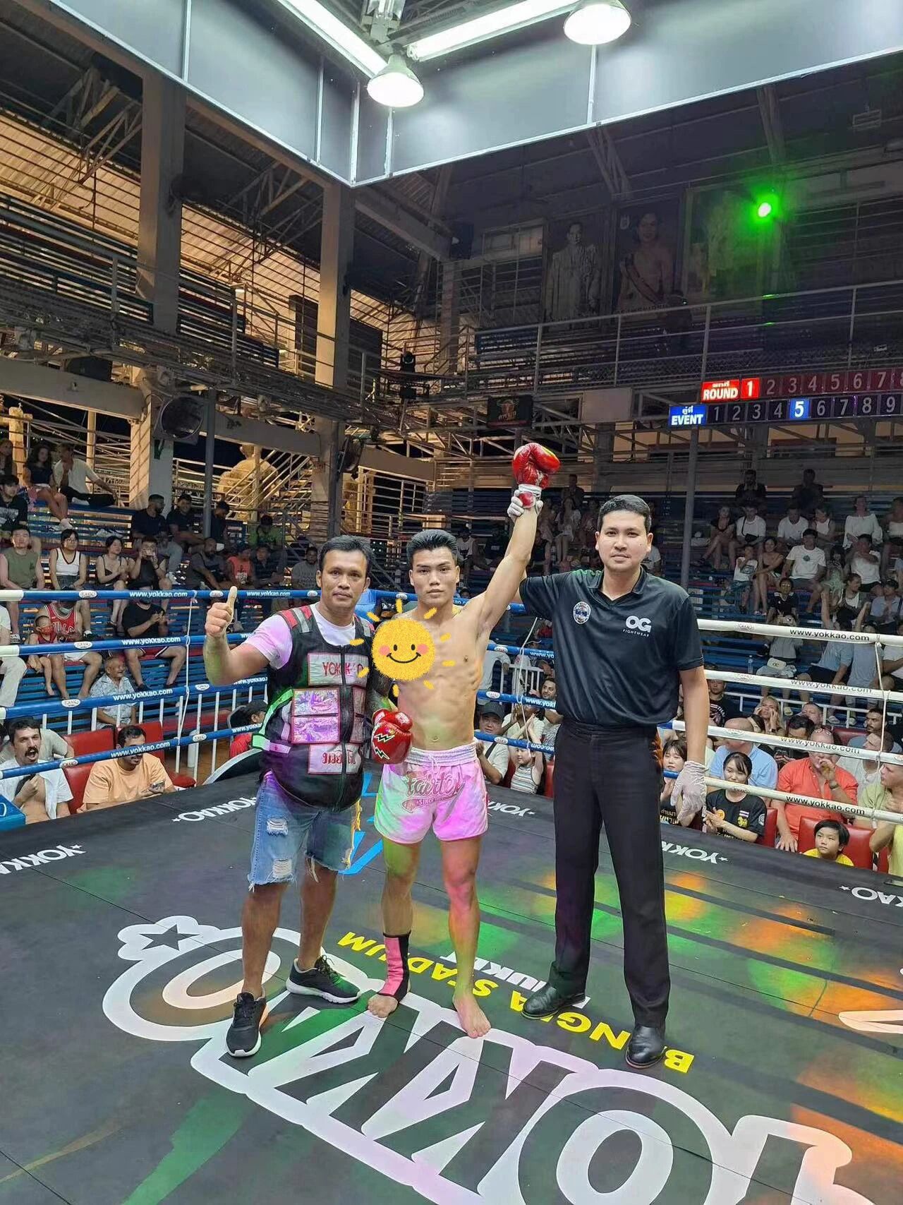 异国训练充满挑战。2024年初,在一次泰国电视台直播比赛中,他的眉骨严重受伤,缝合了14针。“伤病是难免的。”明国伟坦言,“通常只有受伤后,我才会在家里待得久一些。”他从不让家人看见自己伤后的模样,每一次伤愈后的重新出发,都是一次自我超越。正如他所言:“在泰国,有世界各国的拳手可以切磋,进步是跨越式的。”