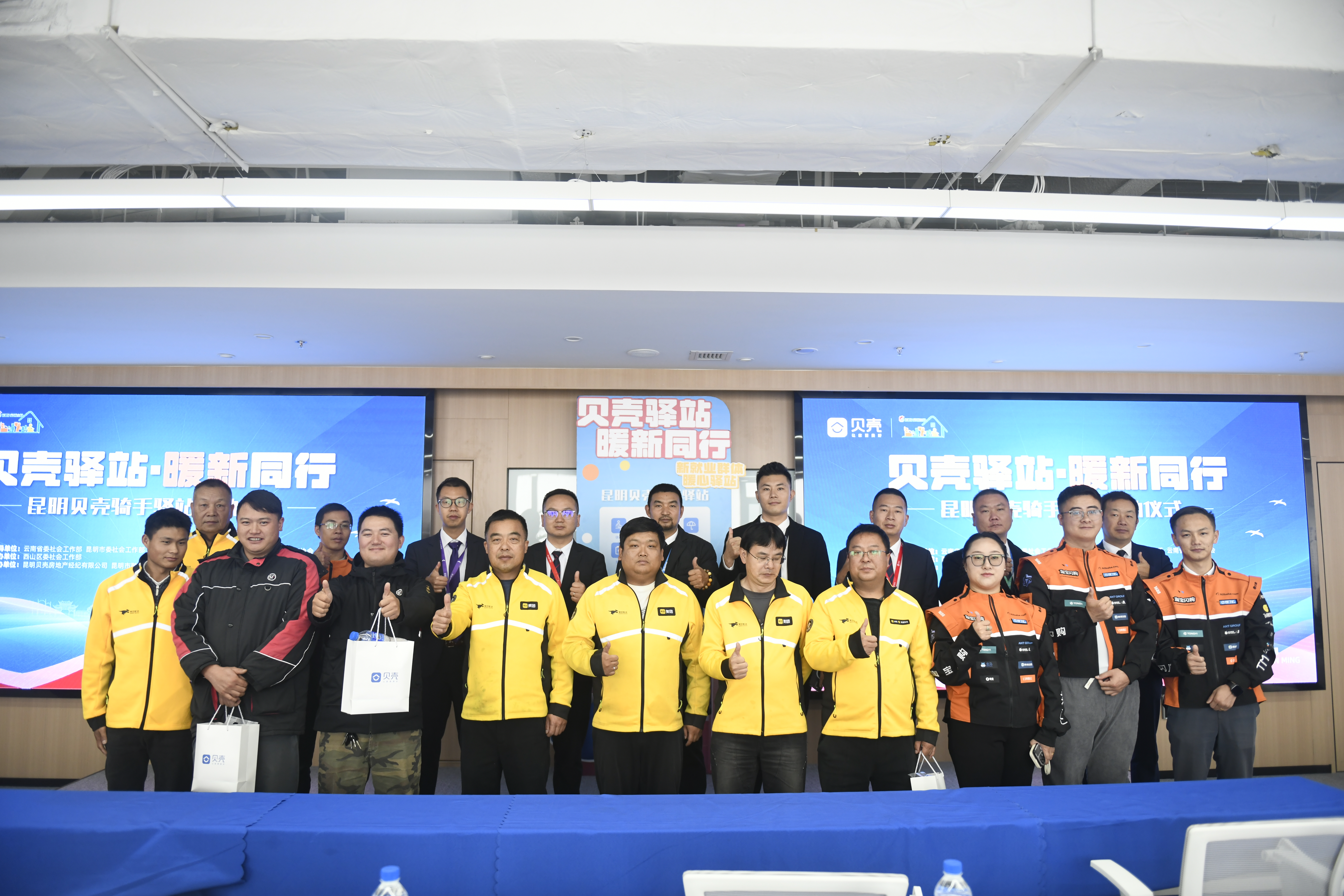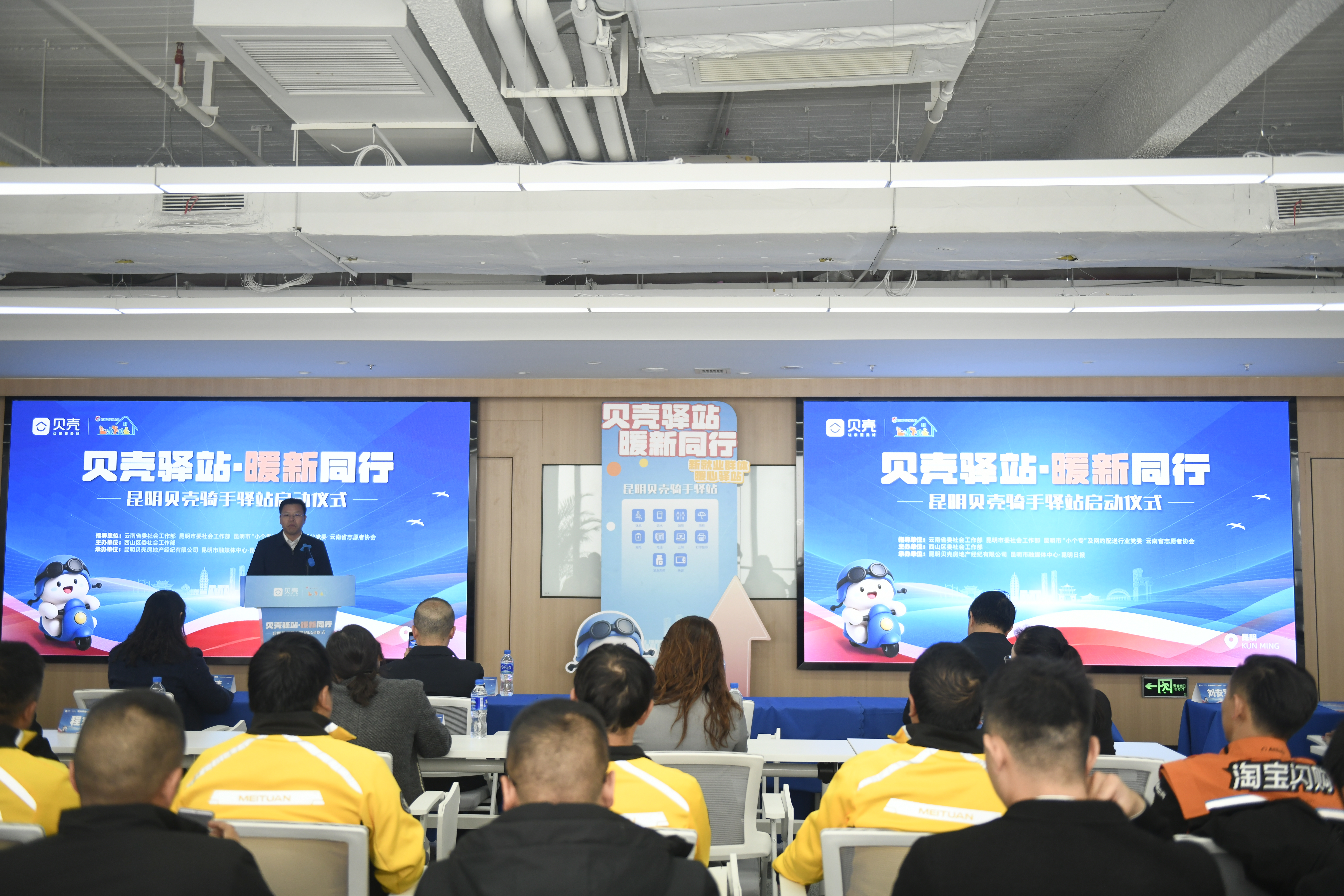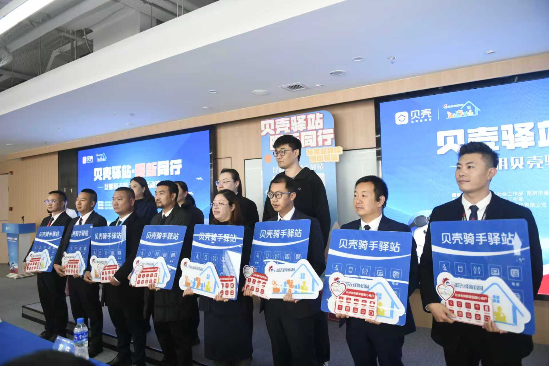 11月3日,在云南省委社会工作部、昆明市委社会工作部等多部门指导与协助下,贝壳找房昆明站“骑手驿站”正式启动。首个“贝壳骑手驿站”也正式揭幕,这意味着骑手们可以在“贝壳骑手驿站”实现如厕、饮水、充电、电话、打印复印等。