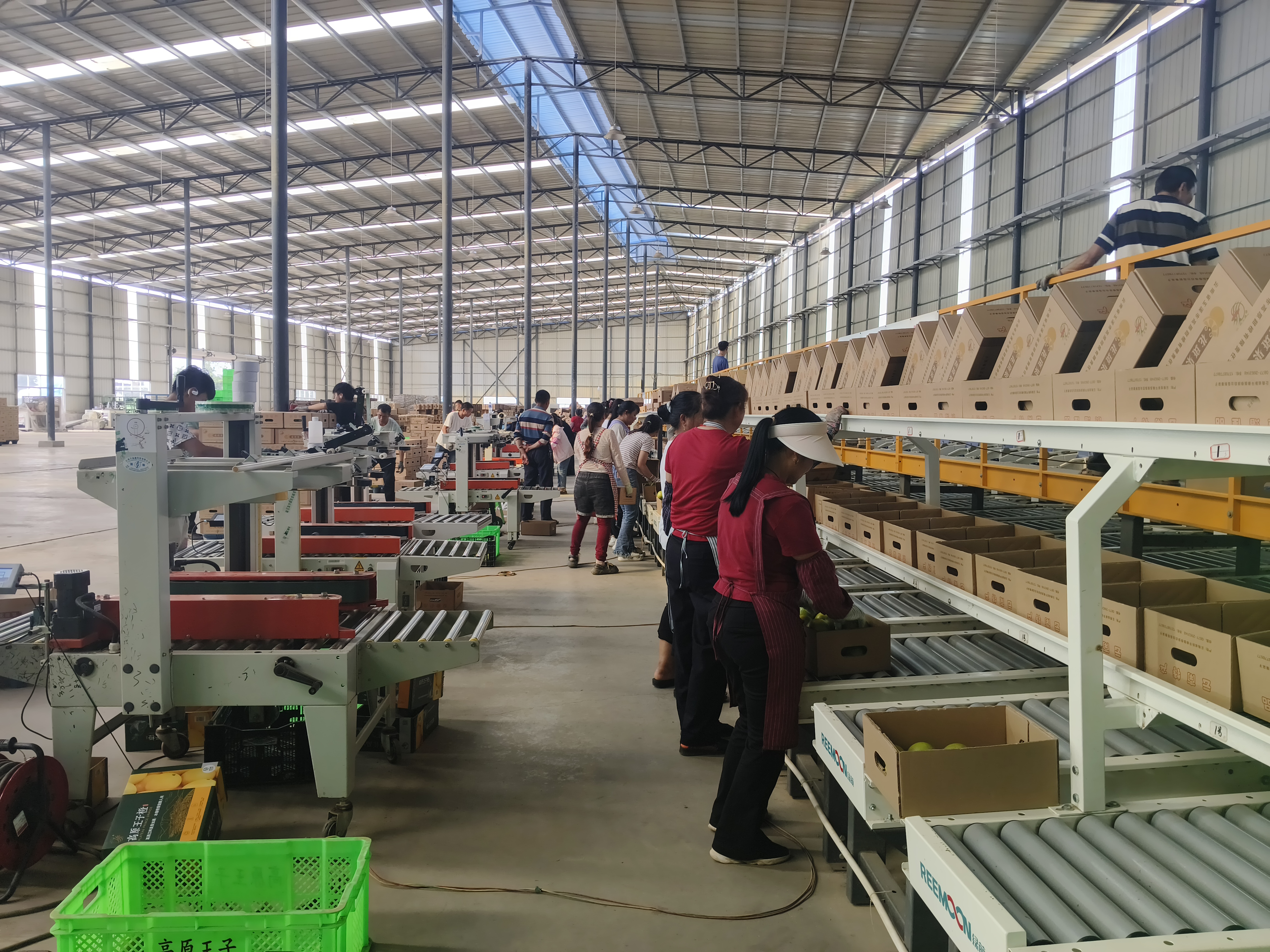 与此同时,产业链后端的标准化选果厂也开足了马力。在新平水塘良橙农业有限公司的现代化选果厂内机器声隆隆,一条条自动化分选线高速运转,每一个冰糖橙的大小、颜色经过选果机器后,都被分得清清楚楚,熟练的工人将分好的橙子搬运至打包车间,再经过选果工人精心细挑,一件件诱人的冰糖橙就将发往五湖四海。