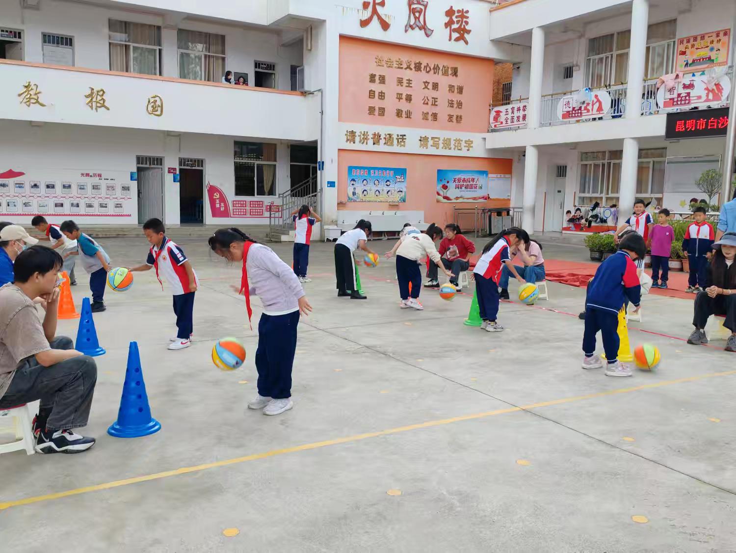 前期策划阶段,民族元素便贯穿始终。学校围绕苗族银饰、彝族彩绸、白族扎染等文化符号设计活动环节,现场以民族纹样搭配体育标语装饰,提前营造出“民族风情 + 青春竞技”的独特氛围,让师生在活动伊始便感受民族文化的鲜活魅力。