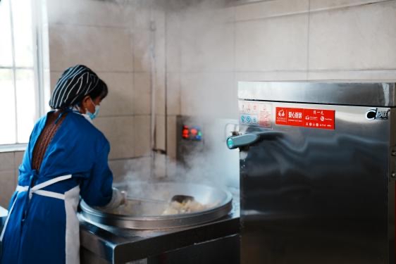 2025年的秋季学期,他留山小学的学校食堂有了新变化。厨房里,厨工阿姨在功能分区的洗菜池前忙碌,电热多功能蒸饭柜里冒出蒸腾的热气、电磁灶中翻炒的彩椒牛肉丝香味诱人。消毒柜、保鲜柜等现代化设备有序运转。一顿相较过去省时省力、也更健康安全的学生午餐很快端上了孩子们的餐桌。