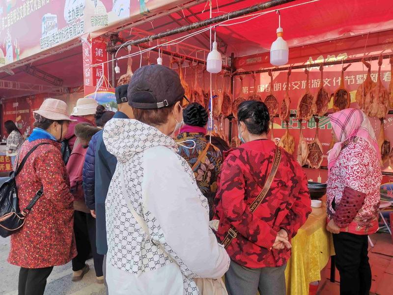 与此同时,新春年货街也宛如一个充满魅力的年货宝库。美食区内,各种香味交织,令人食欲大动。这里有闻名遐迩、咸香入味的宣威火腿,有嚼劲十足、风味独特的牛干巴,还有将花香与药效结合、口感软糯的三七鲜花饼。手工糖、腊肠、泡梨、野生菌等年味美食琳琅满目,满足不同口味需求。剪纸、春联等民族手工艺品与马年生肖灯笼等春节喜庆用品陈列一处,红红火火,洋溢着浓厚的节日气氛。