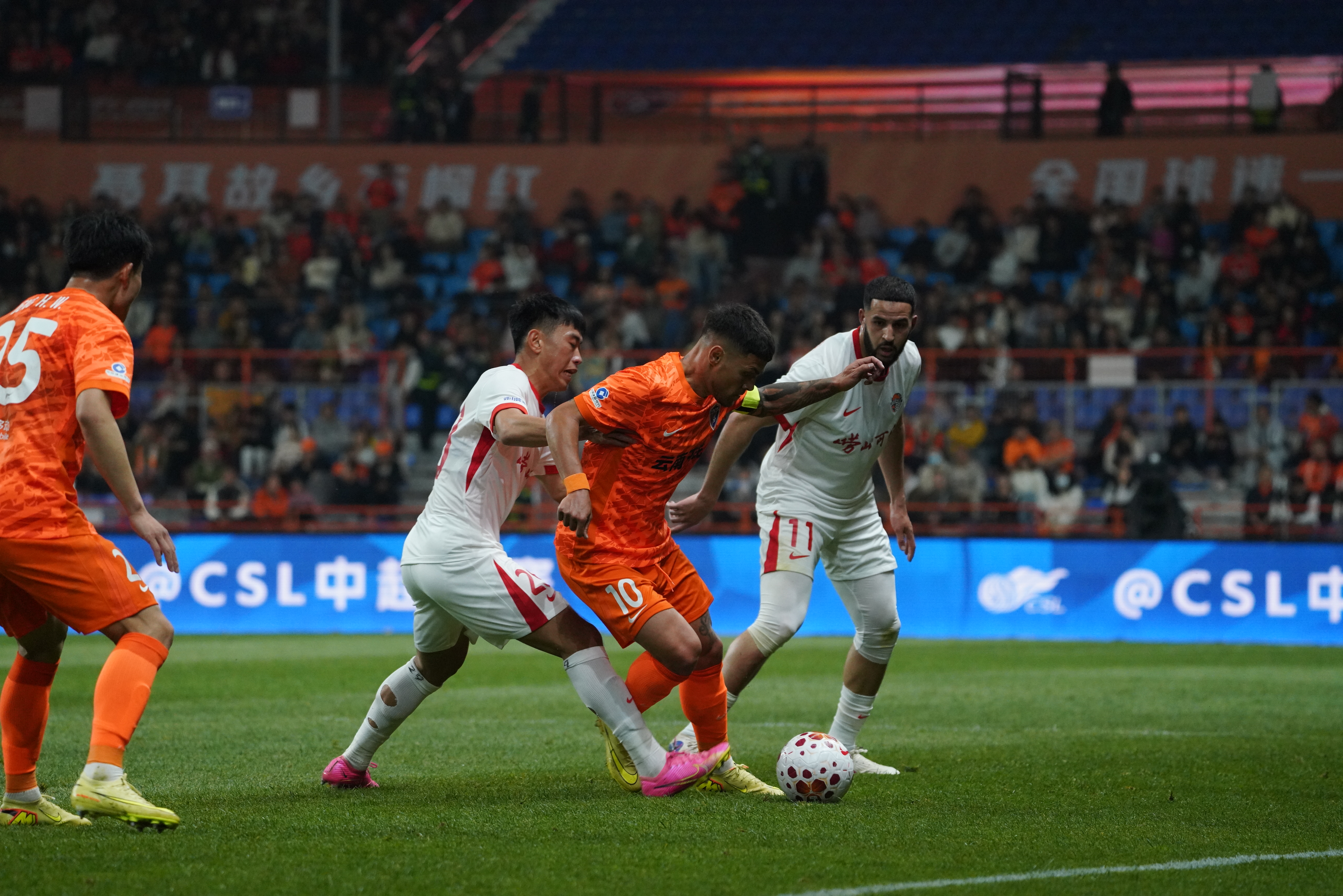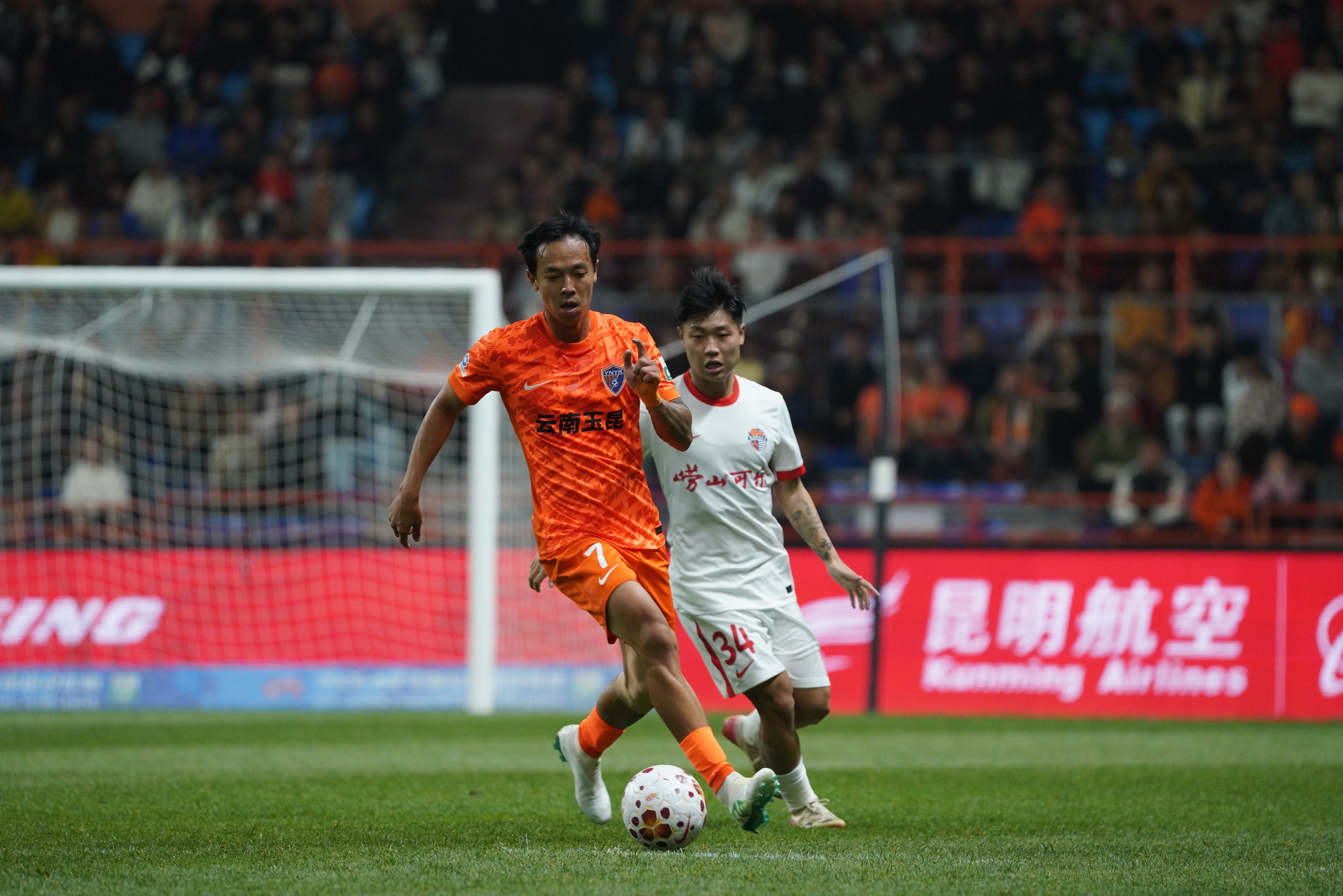 19时35分,比赛在凉爽的晚风中准时打响。开场后,主场作战的云南玉昆队在现场球迷山呼海啸般的助威声中迅速进入状态,展现出极强的进攻欲望。第8分钟,他们便通过前场逼抢制造出极具威胁的攻势,瞬间点燃了全场气氛。