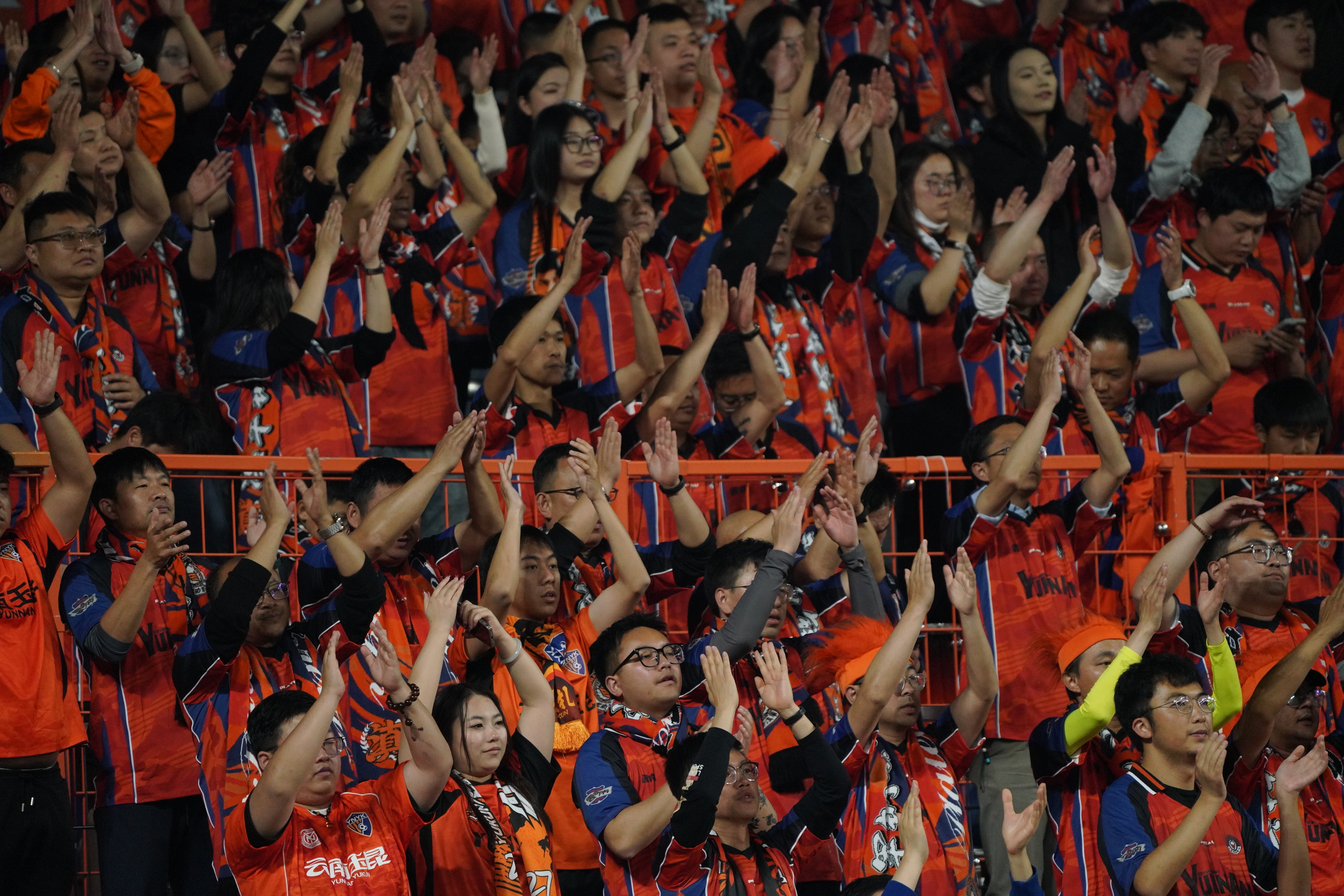 随着主裁判一声哨响,全场比赛结束,云南玉昆队主场以3:1击败青岛海牛队,取得新赛季中超联赛开门红。看台上,球迷们掀起一波又一波人浪,欢呼声、歌声响彻云霄,共同庆祝这场酣畅淋漓的胜利。