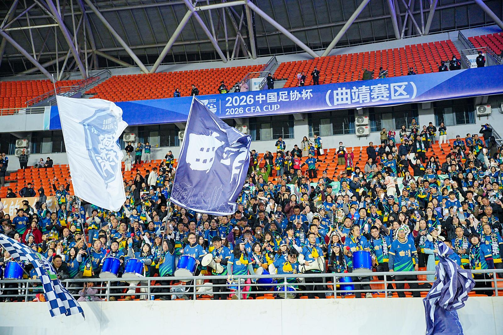 3月13日晚,珠江源头,战鼓擂动,热血沸腾。2026中国足协杯(中国足坛最高级别淘汰制杯赛)70周年开幕式及揭幕战在曲靖市文化体育公园体育场激情启幕。坐镇珠江源头主场的云南爨合队以3:1力克广州悦高队,斩获“珠江德比”开门红并成功晋级下一轮,不仅填补了曲靖顶级足球赛事的空白,更镌刻下云南草根足球的全新历史。
