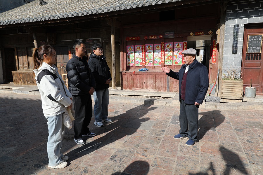 退休多年的陈兆彩始终担任白雾村保护开发顾问,坚持为游客义务讲解。从“娜姑”彝语地名由来,到会馆文化多元融合,枯燥的史料在他口中化作有温度、有声音的鲜活记忆。游客们常说:“听陈老讲一遍,古村的石头、木头都活了。”