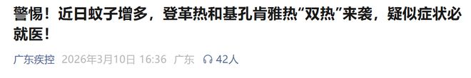 “广东疾控”再次提醒广大市民朋友,关注“双热”,有疑似症状及时就医。