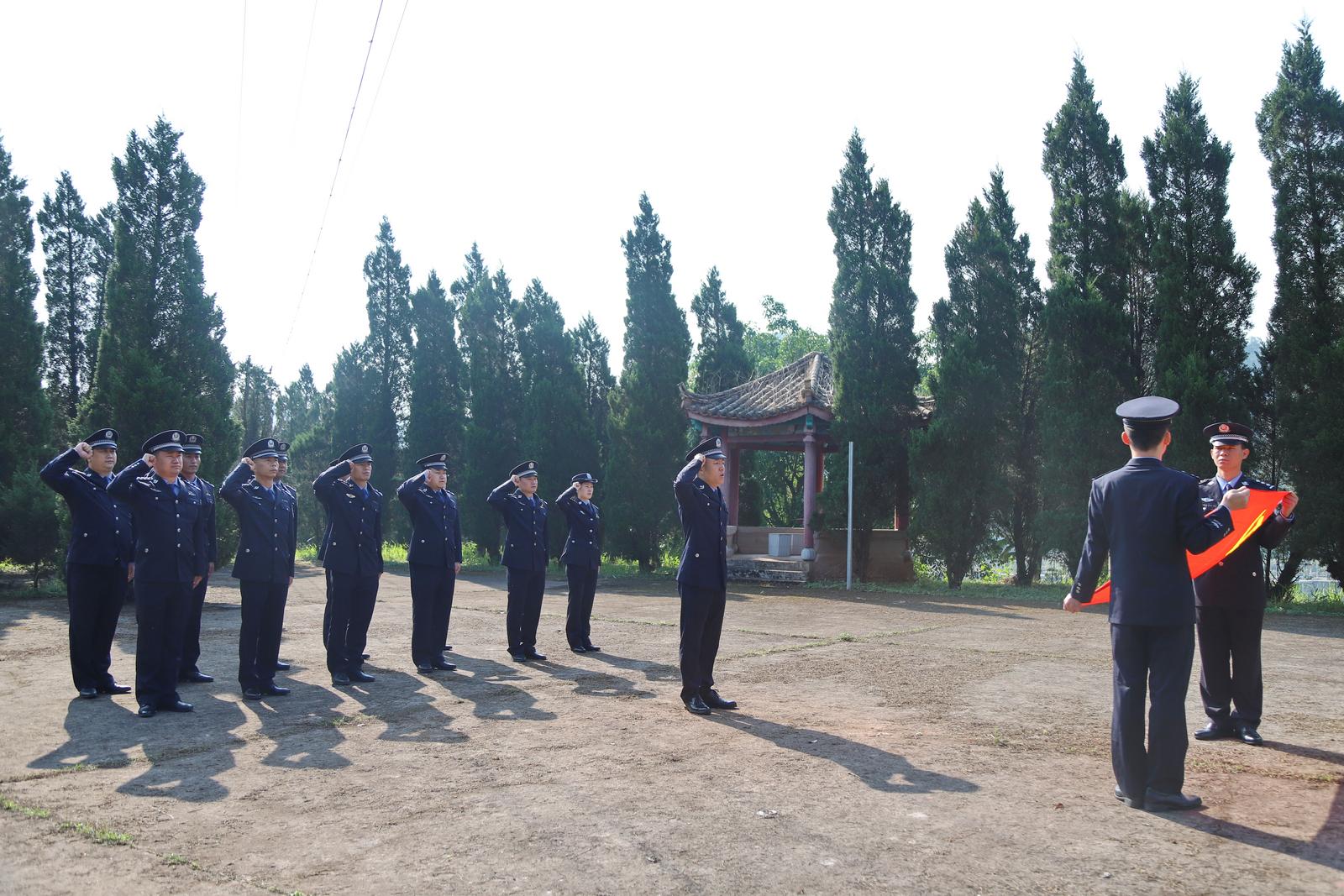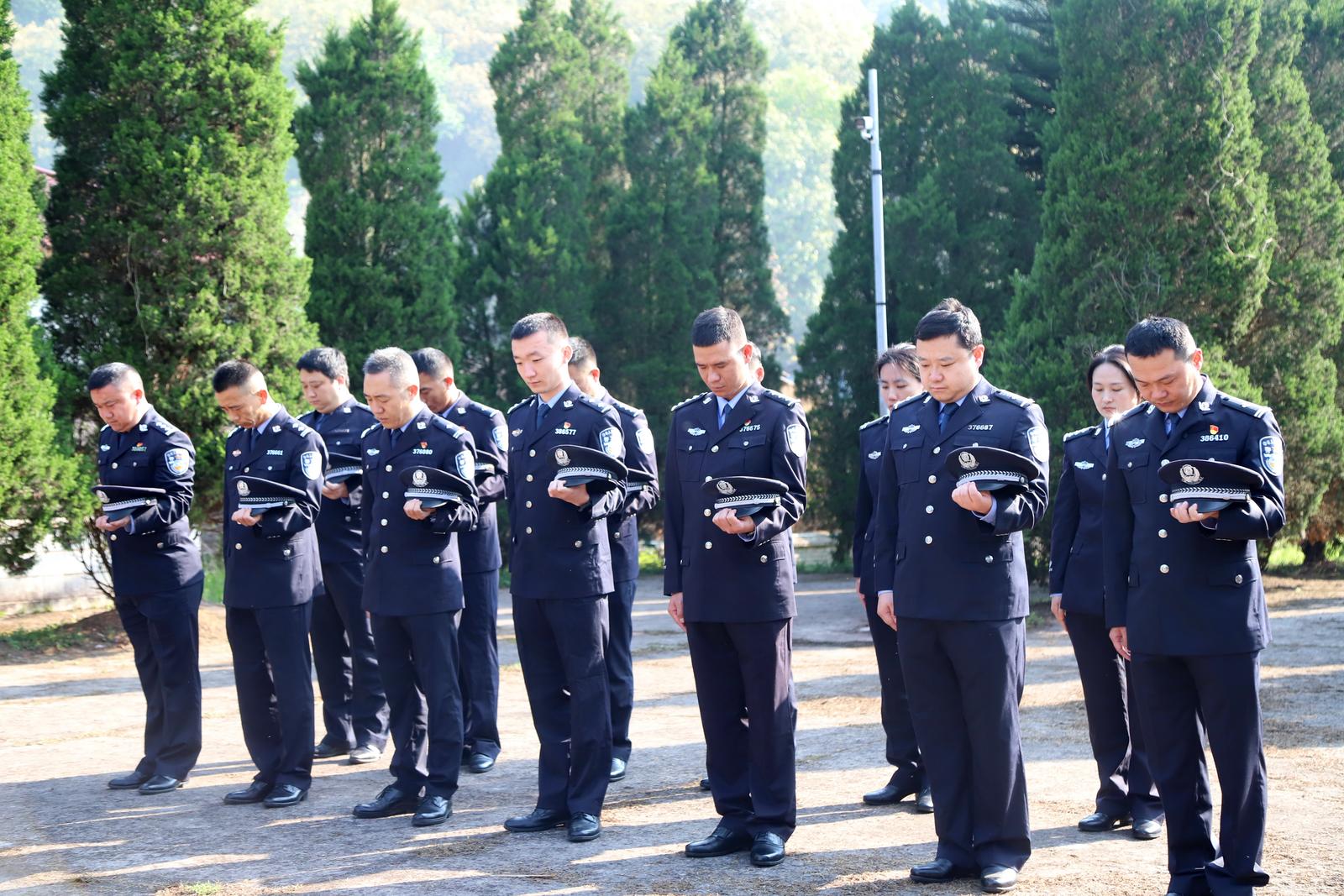 烈士陵园内,全体民警警容严整、列队肃立,在巍峨的革命烈士纪念碑前脱帽默哀,向为边疆安宁献出生命的英烈致以最深切的追思。默哀毕,全体党员面向党旗,高举右拳,重温入党誓词。铿锵誓言响彻陵园,如铁如磐,彰显新时代移民管理警察不忘初心、牢记使命的坚定信仰。