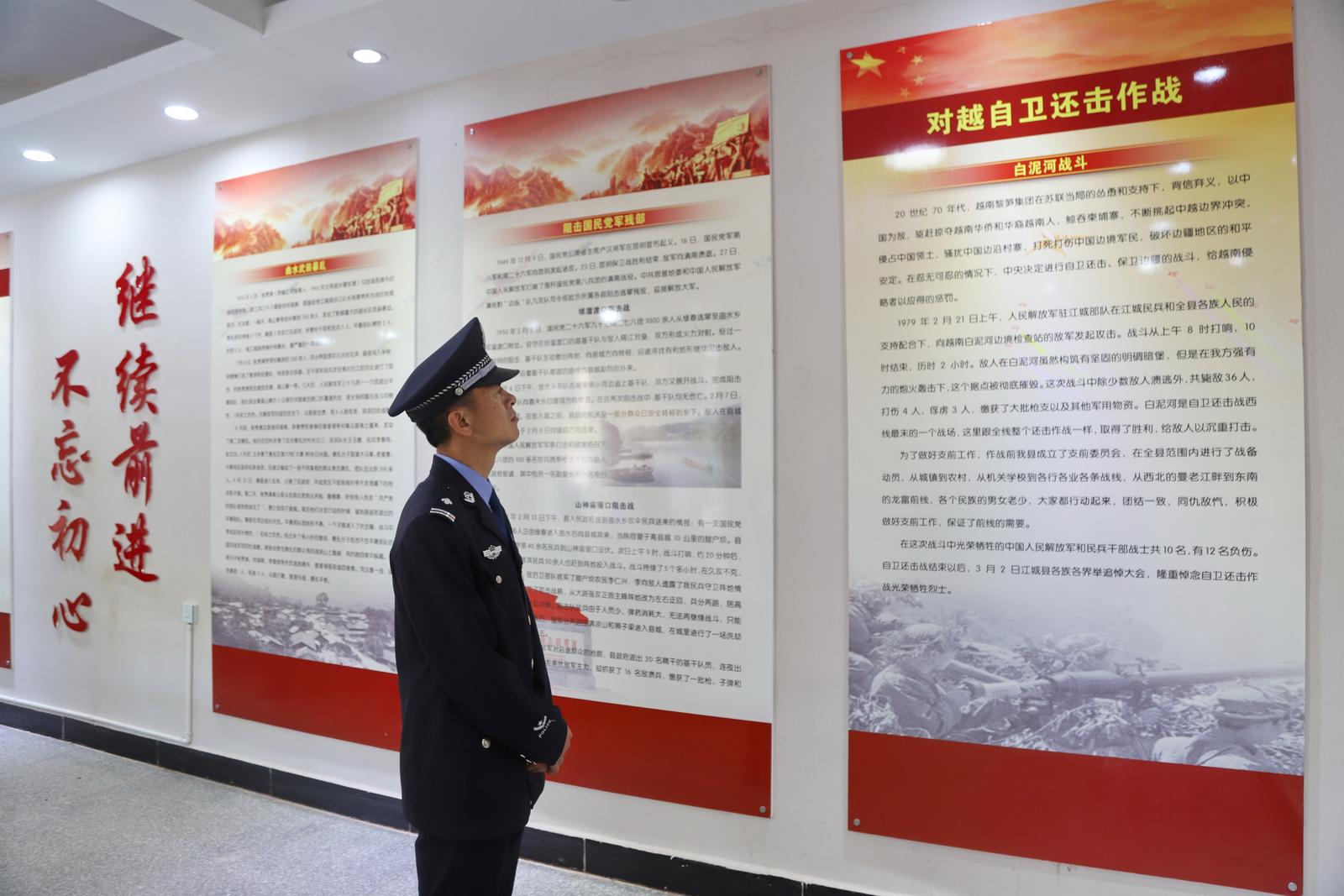 仪式后,民警们为革命先烈献上素菊,俯身于烈士墓前,仔细擦拭墓碑、清扫落叶,以朴素而庄重的方式表达对英烈的敬仰与怀念。随后,全体人员走进革命烈士纪念馆,驻足凝视一幅幅历史图片,聆听先烈浴血奋战、誓死戍边的英雄事迹,在穿越时空的“对话”中感悟忠诚本色。