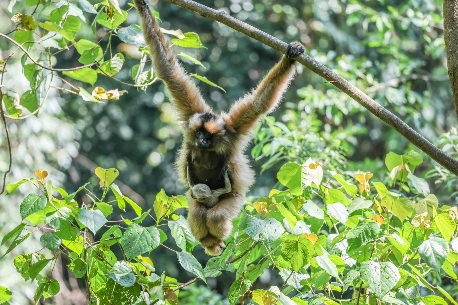3月23日,工作人员在云南无量山哀牢山国家级自然保护区景东大寨子区域巡护监测时,发现一只雌性西黑冠长臂猿怀里多了一只新生的猿宝宝。【点击查看详情】