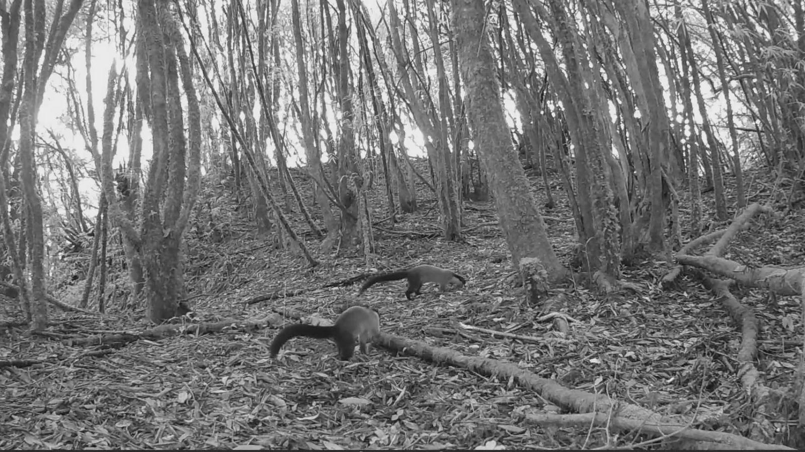 此外,红外相机还记录到了四只国家二级保护动物白鹇和一只可爱的小松鼠同框觅食的和谐景象,两只猕猴打斗、数只黄喉貂追逐激斗的热闹场景,以及赤麂甜蜜约会的瞬间。