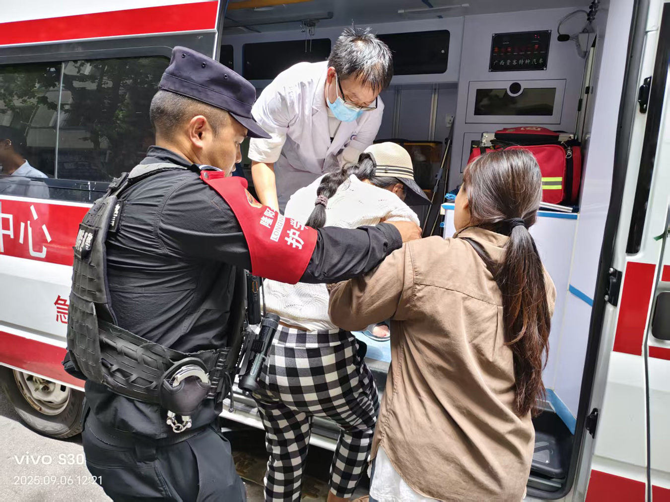 一次,有群众扫墓时不慎摔倒,腰椎骨折无法移动。正在骑警组巡逻的钏兴应接到指令,调转车头就往山上冲。山路崎岖、布满荆棘,他扛着担架一步一步往山下挪,膝盖磨破了,裤腿渗出血,他却说:“把群众送上救护车那一刻,心里全是成就感。”