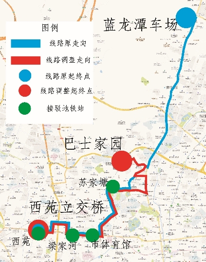 调整后:巴士家园 ↔ 西苑立交桥