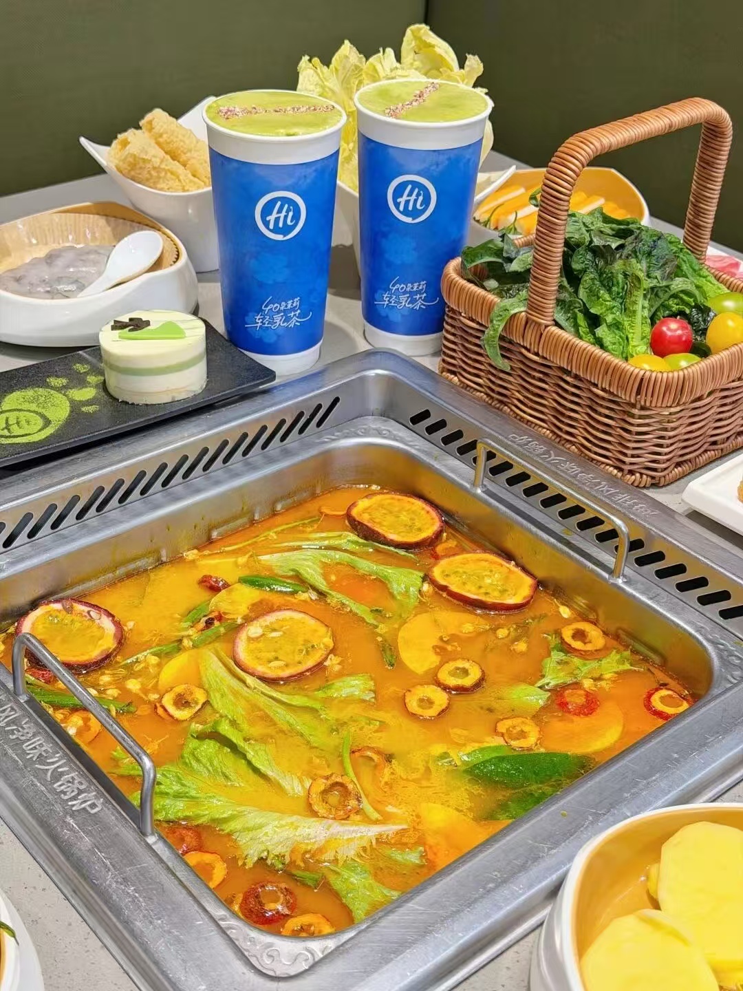 本次春季新品聚焦云贵地道风味,打造苗族酸汤舂舂锅、云南高山红香麦、木姜子 10 秒牛肉、春天三重奏蛋糕、40 朵茉莉轻乳茶五款春日限定,从锅底、涮品到甜品茶饮,完整覆盖春日用餐场景。其中苗族酸汤舂舂锅源自贵州凯里苗族酸汤传统技艺,以白酸汤为基底,搭配酸木瓜、百香果等鲜爽果蔬,出汤前现舂 12 种天然食材,层次丰富、酸辣开胃。依托高温杀菌与恒温发酵技术,这一非遗风味突破保存与规模化难题,从苗家餐桌走向全国食客。