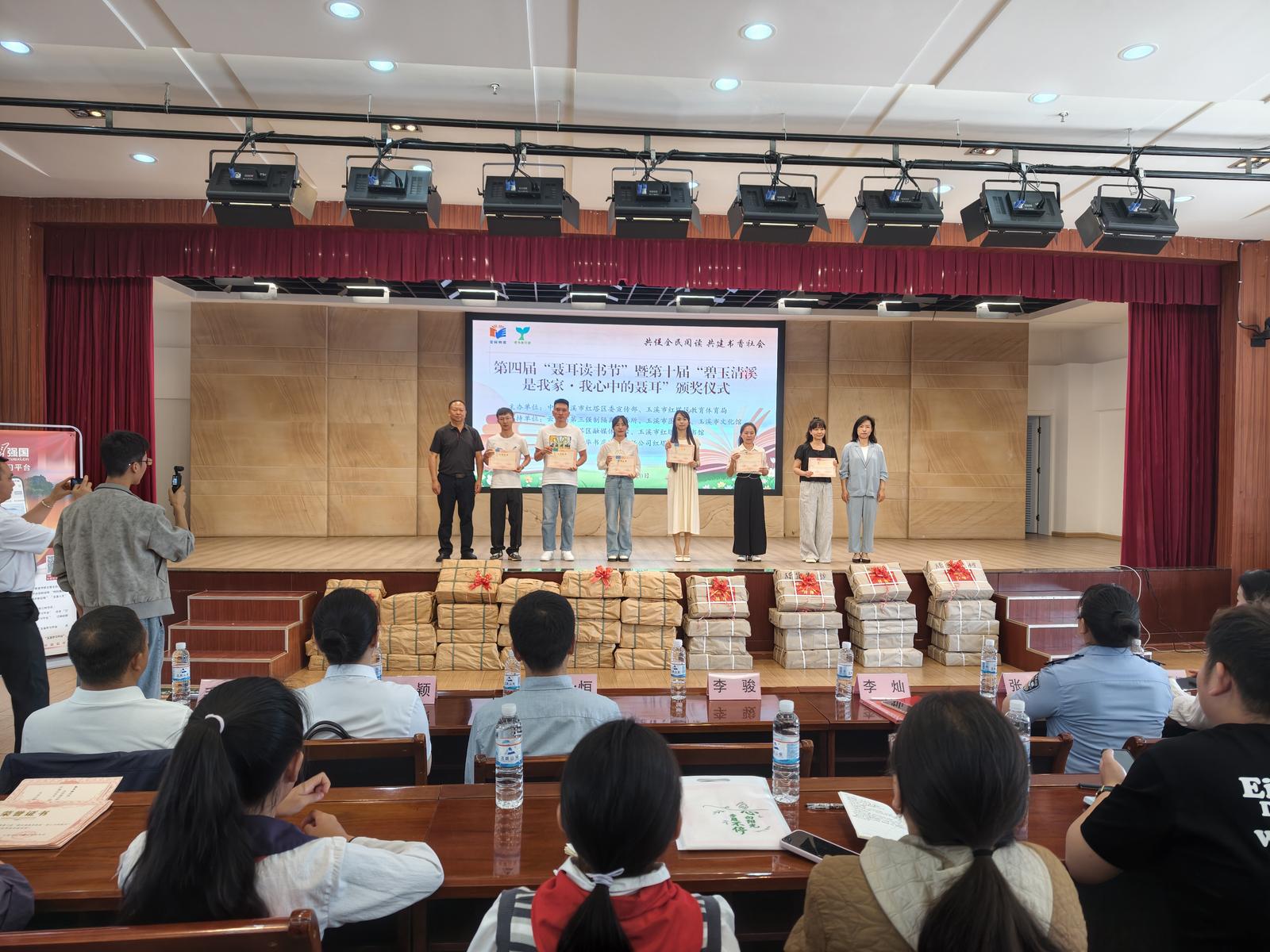 现场还为第四届“聂耳读书节”暨第十届“碧玉清溪是我家・我心中的聂耳”相关活动获奖代表颁发荣誉证书。云南省第三强制隔离戒毒所、云南玉溪新华书店有限责任公司红塔区分公司分别向多所中小学捐赠图书,以爱心助力书香校园建设,为护苗行动注入温暖力量。活动还设置了优秀书画作品展、阅读挑战赛、图书交换等沉浸式阅读活动,进一步激发全民阅读参与热情。